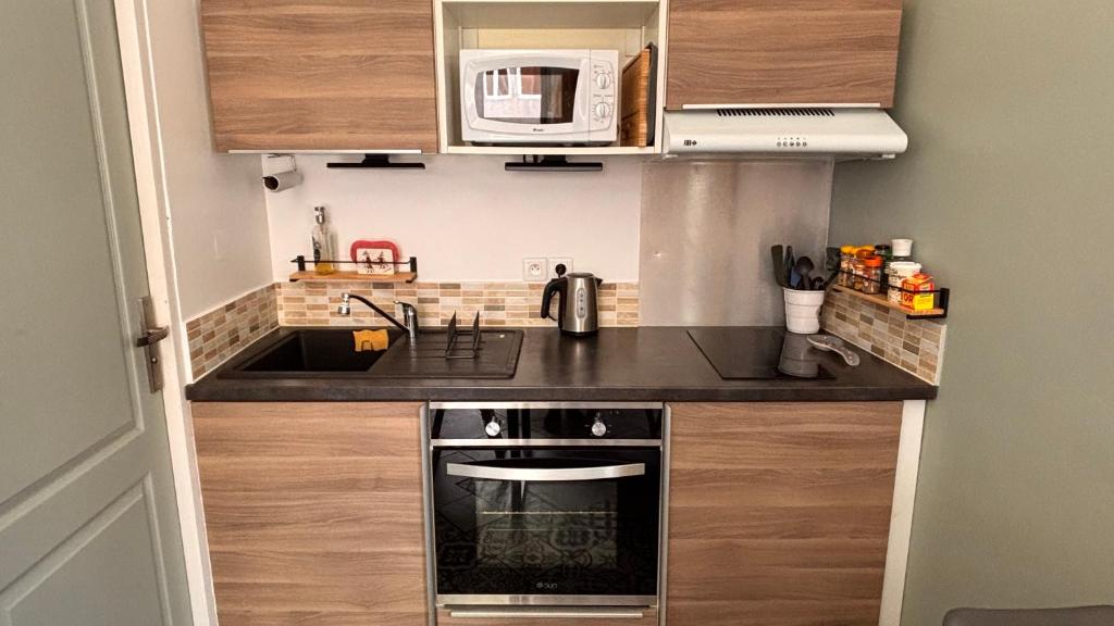 La cuisine est entièrement équipée et idéale pour préparer vos repas en toute autonomie.