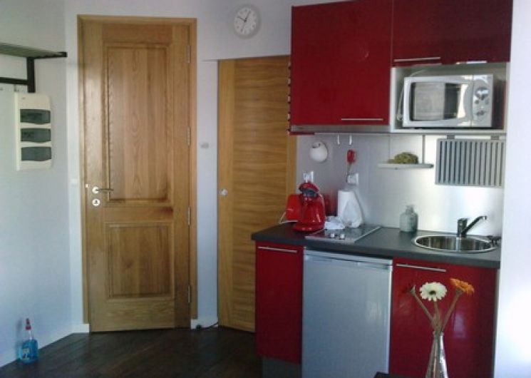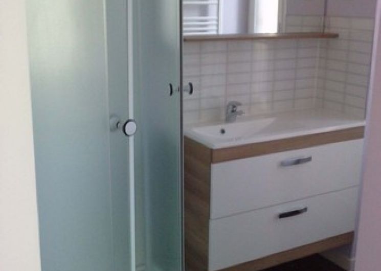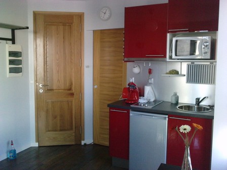 Appartement au 1er étage, chambre indépendante avec un lit 140×190, literie en latex neuve, salle de bains avec douche d’angle, WC et lavabo. Pièce à vivre avec cuisine équipée, coin repas. Lave linge. Non fumeur + WIFI