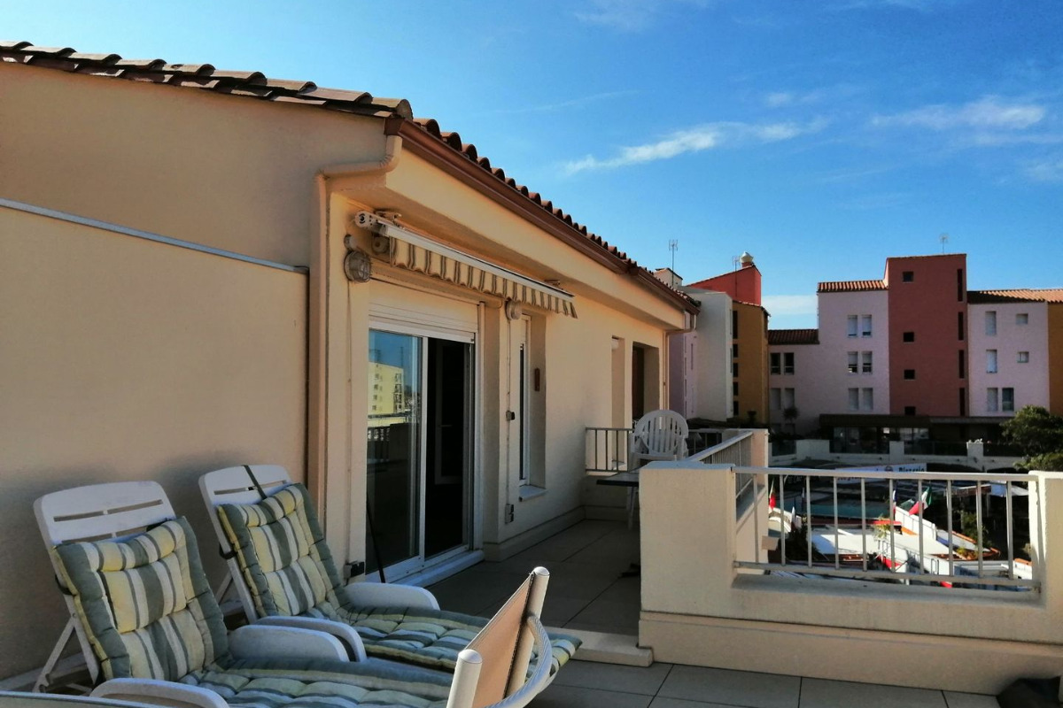 T2 TRAVERSANT AVEC VUE PORT ET TERRASSE – RÉSIDENCE AVEC PISCINE AU CAP D’AGDE