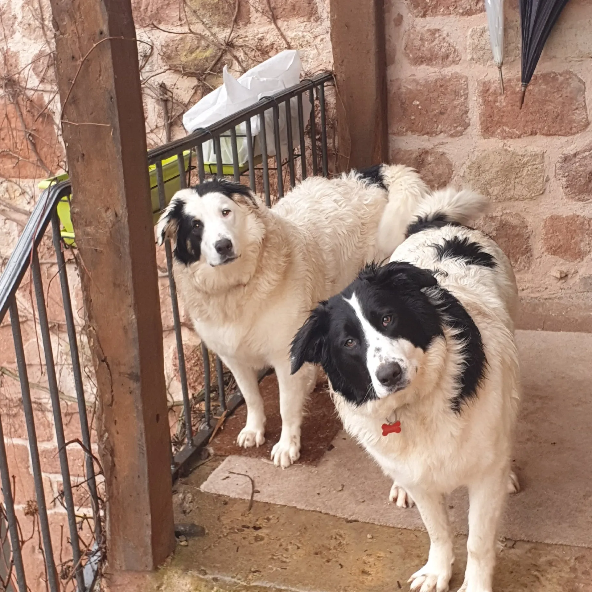 Nous avons 2 adorables chiennes qui ne rentrent pas dans la maison. Nous avons également 2 chats qui vivent avec nous mais sont interdits de chambres.
