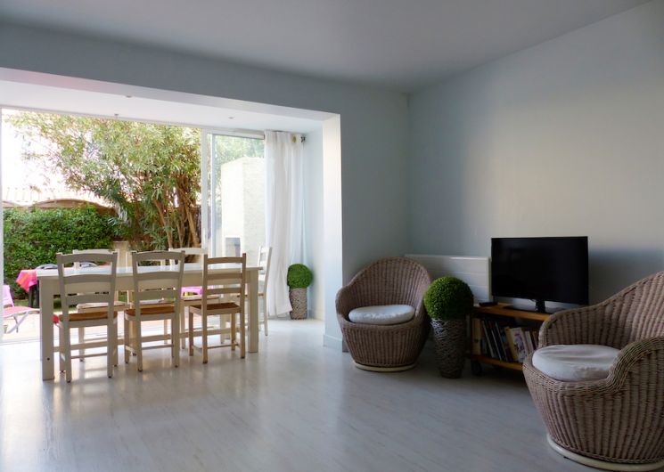 Charmante maison individuelle, tout confort, lumineuse, entièrement rénovée, à moins de deux minutes de la plage, prête à vous accueillir pour tout type de séjour avec ses 7 couchages (3 chambres, 3 lits doubles et 1 lit simple, 2 salles d’eau avec WC ). Idéalement située dans un lotissement calme et familial, avec des extérieurs sécurisés et très bien équipés des 2 côtés de la maison : joli jardin avec espace repas et BBQ, beau patio catalan avec espace lounge (transats, canapés d’extérieur, ….). Connexion internet illimitée en Wifi dans toute la maison.