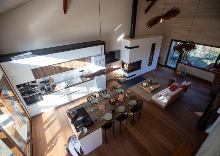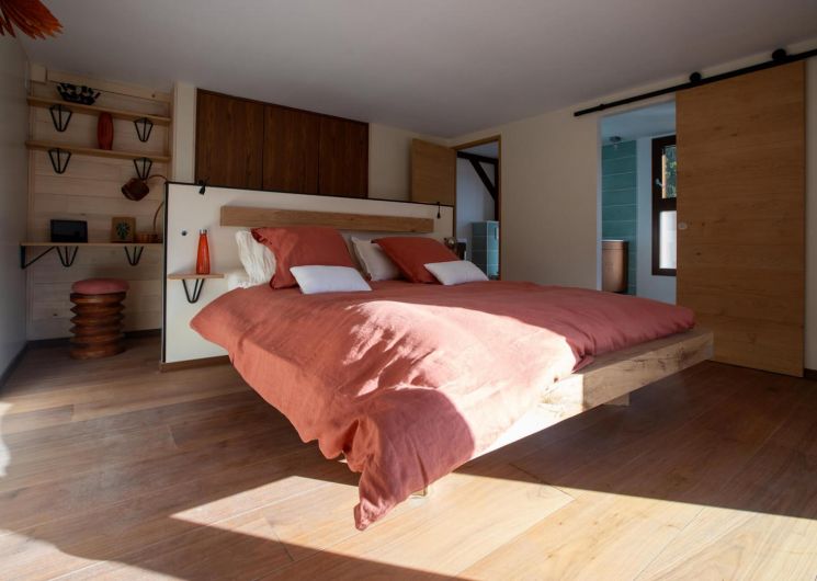 Cet écolodge contemporain aux prestations haut-de-gamme de plus de 120m² peut accueillir 4 personnes. Son propriétaire a voulu en faire un exemple d’habitat écologique: maison passive, matériaux sains et locaux, puits canadien pour le confort d’été, équipements d’origine France…