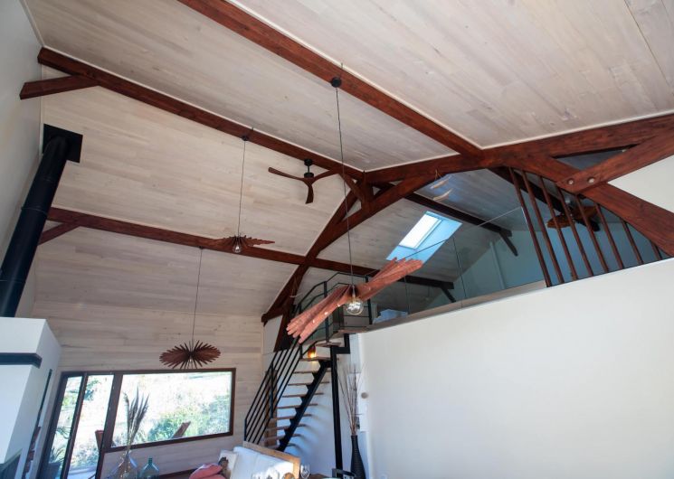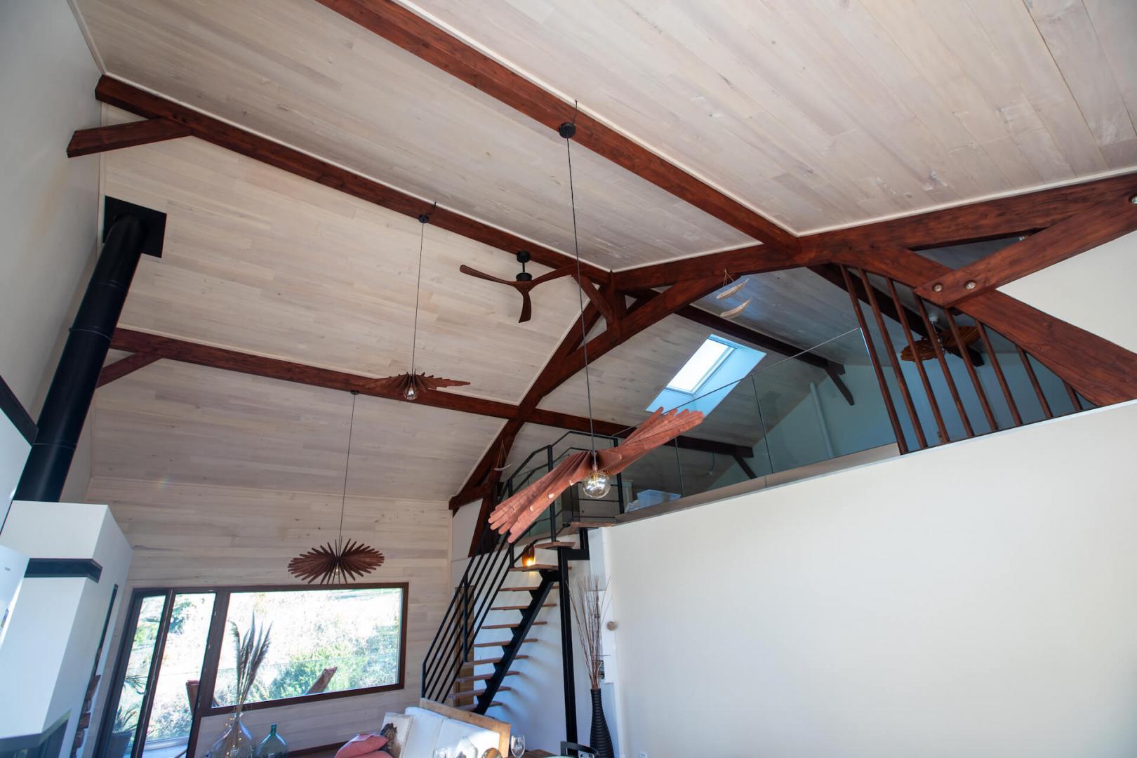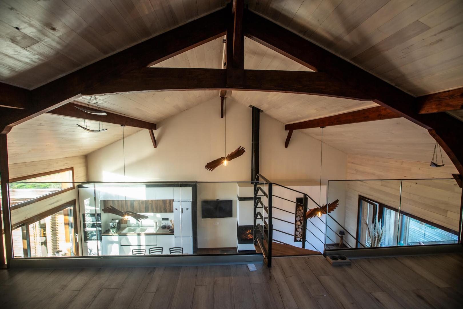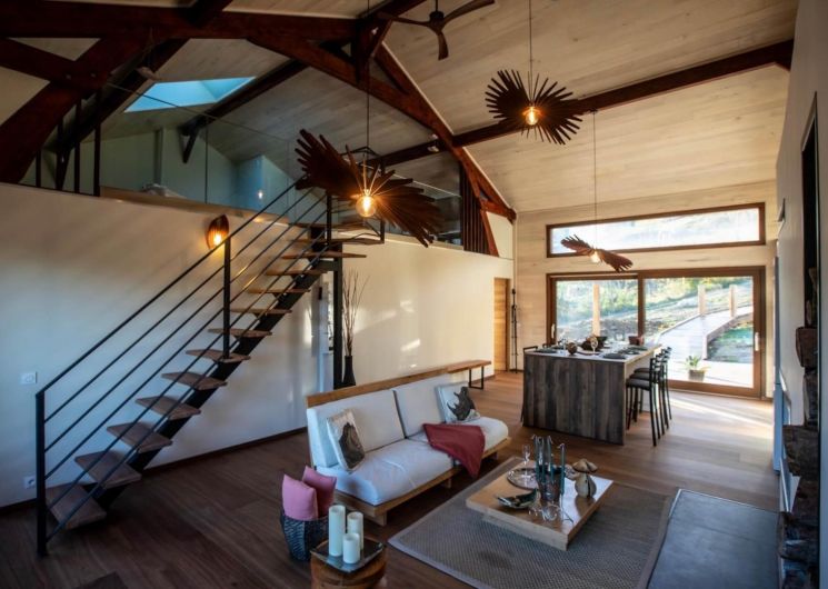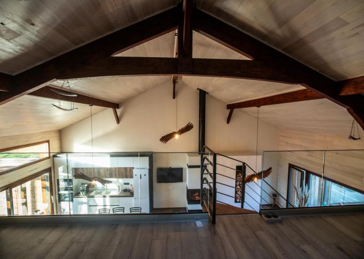 – A l’étage : une mezzanine dédiée au repos (salle de jeux), couchages d’appoint en alcôve