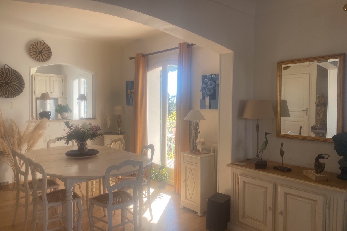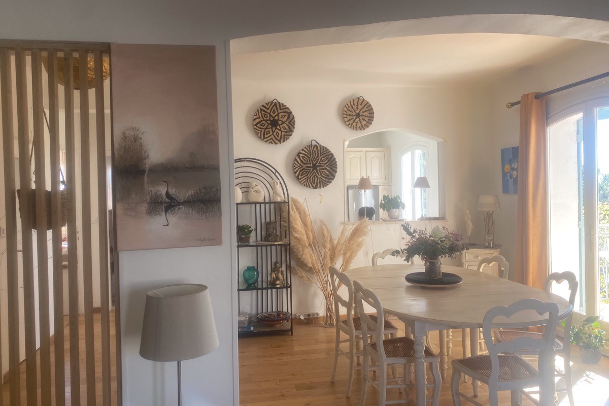 Découvrez Votre Oasis de Tranquillité à Teyran Bienvenue dans ce coin de paradis à Teyran, une maison climatisée nichée au sommet de la colline, idéale pour des vacances reposantes en pleine nature. Vue Panoramique et Emplacement Idéal Profitez d’une vue imprenable sur la mer au loin, avec la Grande-Motte en toile de fond. Située au bout d’une impasse, cette maison garantit un calme absolu, entourée par la pinède. A proximité, découvrez : * Un parcours de santé * Un terrain de boules, les tennis, le stade, le terrain de basket * Le départ de nombreuses randonnées, * La MJC qui propose de nombreuses activités durant les vacances. Confort et Equipements Modernes La maison, classée 3 étoiles, offre tout le confort pour un séjour agréable : Au Rez-de-chaussée : * Une cuisine indépendante * Un petit salon pour la détente avec accès à la terrasse sud/ouest. * Deux chambres Indépendantes avec lits doubles donnant sur la terrasse * Une chambre Indépendante donnant sur la piscine avec un lit en 90 cm et un lit gigogne en 90 cm * Une chambre indépendante avec canapé convertible * Buanderie sous l’escalier avec dressing et lave-linge * Salle de bain avec grande baignoire et deux vasques * Toilettes séparées avec lavabo Premier étage : * Un grand séjour (50 m2) avec terrasse offrant une vue mer * Salle de douche à l’italienne et toilettes privées Espace Extérieur et Piscine Privée Détendez-vous sur une grande terrasse en travertin exposée plein sud, idéale pour des soirées barbecue avec vue sur la nature. La piscine privée et sécurisée (équipée d’un volet roulant) est entourée de bains de soleil pour profiter du soleil en toute sérénité. Un espace zen vous attend pour des moments de farniente. Vos animaux de compagnie pourront également s’épanouir en pleine nature. Services complémentaires : * Location de draps : 30 € par lit * Location de linge de toilette : 15 € par pers. (petite et grande serviette + serviette de plage) * Service de Ménage : 200 euros/séjour Cette propriété est l’endroit idéal pour ceux qui cherchent à se ressourcer dans un cadre naturel exceptionnel tout en bénéficiant de tout le confort moderne. Réservez dès maintenant votre séjour dans ce petit coin de paradis à Teyran et créez des souvenirs inoubliables.