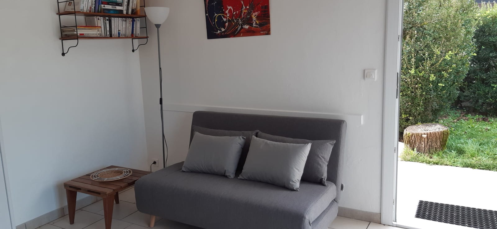 Séjour avec canapé et TV , coin cuisine équipé. 1 chambre avec couchage en 140 , salle d’eau et wc indépendant. Chauffage si besoin. Location de linge sur demande. Jardin et terrasse ombragée avec salon de jardin et chiliennes, parasol et barbecue emplacement gratuit de parking fermé devant la maison.