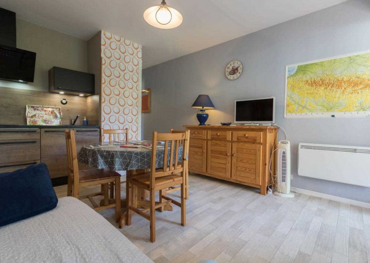 Appartement au premier étage d’une résidence sans ascenseur, accessible depuis le parking à votre disposition côté Rue Adrien Bochet ou côté Boulevard Henri de Gorsse, et qui est aménagé de la façon suivante : entrée, WC indépendant, chambre (1 lit double en 140*190cm), salle d’eau et séjour avec une cuisine intégrée, un espace repas et un coin salon (canapé convertible pour 2 personnes en 140*190cm). Le séjour donne sur la terrasse.