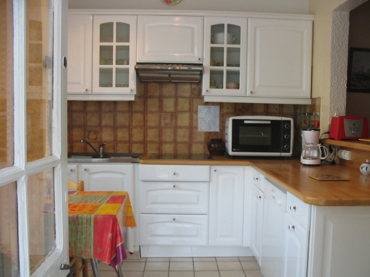 La cuisine est bien équipée : plaque induction, micro-ondes, four ,frigo avec mini congélateur ,lave-vaisselle Lave linge.