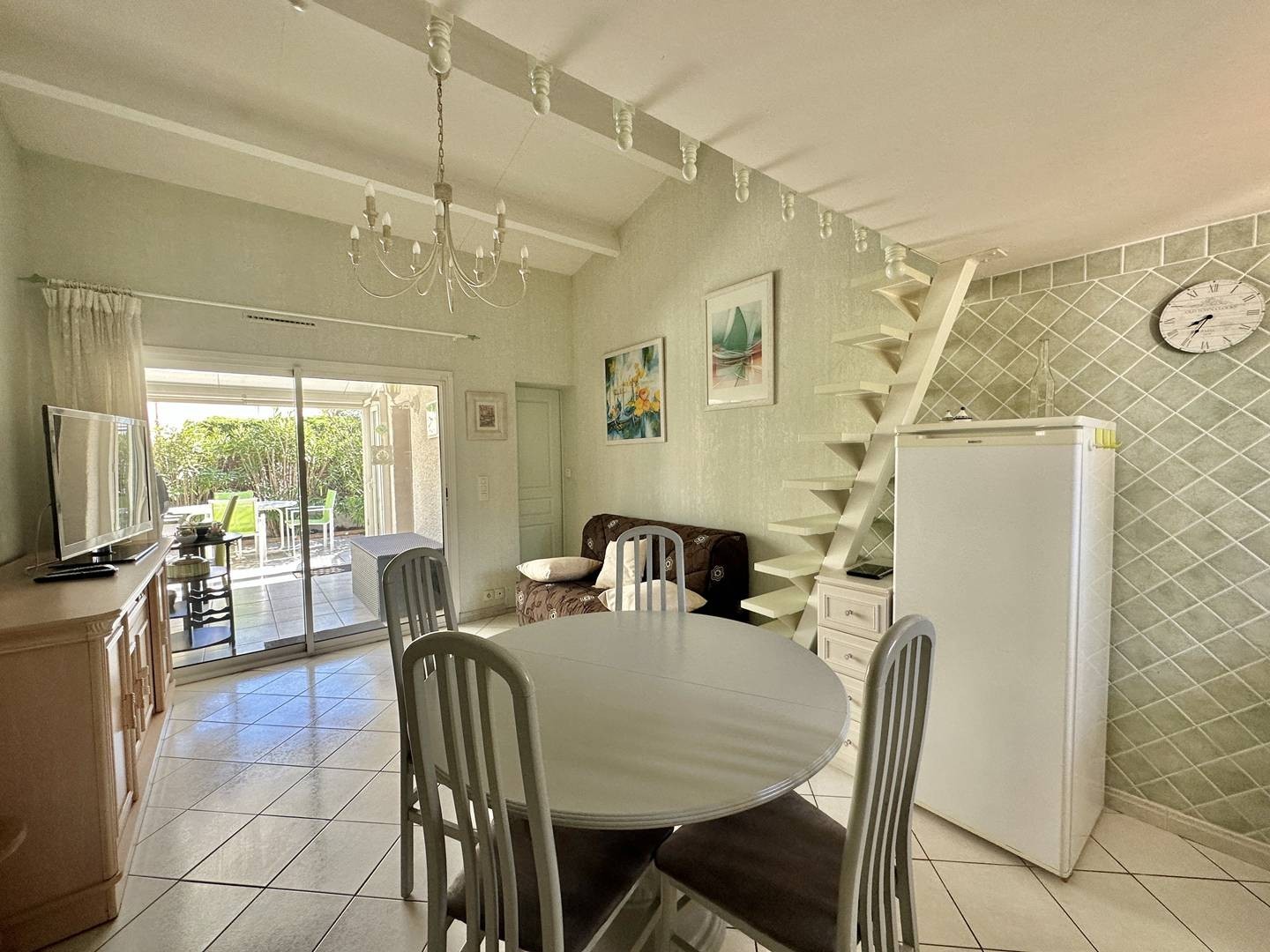 Située dans la charmante résidence sécurisée Les Mas du Soleil, cette villa semi-individuelle de type T3 est idéale pour un séjour en famille ou entre amis. Avec une capacité d’accueil de 6 personnes, cette villa offre tout le confort nécessaire pour des vacances réussies. Elle se compose d’une cuisine entièrement équipée, d’un séjour spacieux avec canapé convertible, et de 2 chambres : la première avec un lit double en 140 cm et la deuxième avec un lit double en 160 cm. La villa dispose également d’une salle d’eau avec douche et de WC séparés. À l’extérieur, profitez d’une belle terrasse ensoleillée et d’une véranda agréable, idéales pour vos repas en plein air ou pour vous détendre au soleil. À seulement 1500 mètres de la plage, vous pourrez facilement accéder aux zones balnéaires tout en bénéficiant du calme de la résidence. De plus, le parking privé n°241 vous permettra de stationner en toute sécurité pendant votre séjour. Équipements : 2 télévisions, micro-ondes, four, réfrigérateur-congélateur, lave-linge, sèche-linge, lave-vaisselle. Animaux acceptés Commodités à proximité : à 500 mètres des commerces Référence Agence Acapulco : 337