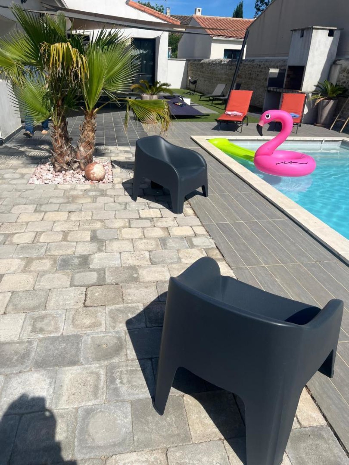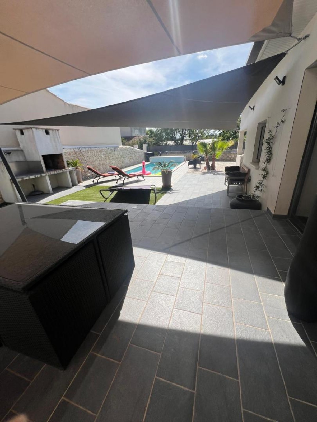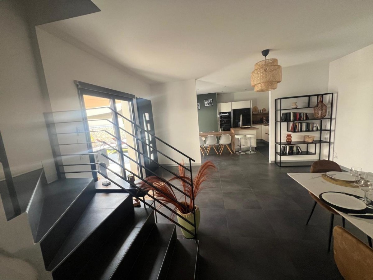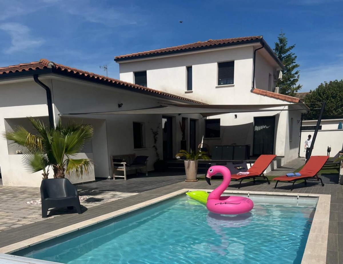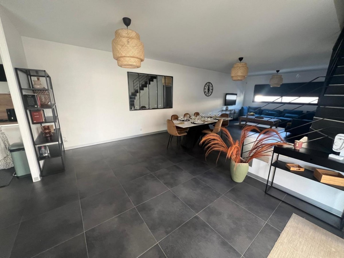 Au fond d’une impasse calme et paisible, dans le village dynamique de Lansargues, découvrez la villa Dolce Vita, une superbe villa moderne, très bien équipée et décorée également, disposant d’un jardin avec terrasse et piscine, de cinq chambres et d’un grand séjour, parfait pour des vacances en famille non loin des plages et de Montpellier ! En effet, à quelques minutes, découvrez les plages méditerranéennes, parfaites pour des journées de détente. Ne manquez pas non plus d’explorer la ville de Montpellier, avec ses ruelles animées, sa place de la Comédie emblématique, sa promenade du Peyrou… Vous ne serez pas non plus très loin du célèbre Pic Saint-Loup, lieu incontournable pour les randonneurs avec ses vues panoramiques, tout comme le village de Saint-Guilhem le Désert avec son abbaye et ses fameuses randonnées. Le gîte comprend : – Une grande pièce de vie avec une table à manger, une bibliothèque avec livres à disposition, un salon avec un canapé et une télévision, ainsi qu’une cuisine ouverte sur le séjour, très bien équipée avec four, micro-ondes, réfrigérateur et congélateur, lave-vaisselle, machine à café Krups, tout le nécessaire de cuisine et même plus (appareil à gaufres, appareil à raclette, fondue…) ; – Cinq chambres dont : une chambre parentale avec un lit 180×200 cm, une télévision, un grand dressing et une salle d’eau avec baignoire, douche, et vasque avec miroir ; une chambre avec un lit en 160×200 cm ; trois chambres avec des lits en 140×190 cm ; – Une deuxième salle d’eau avec douche, WC et vasque avec miroir, ainsi qu’un deuxième WC indépendant ; – Le gîte dispose également d’un lave-linge et d’un sèche-linge ; – Un bel extérieur avec salon de jardin sur la terrasse ombragée avec toiles, piscine de 35m² (1,5m de profondeur), petite cuisine d’été, chaises longues, barbecue… idéal pour profiter de vos vacances sous le soleil de l’Hérault ! Vous pourrez vous garer de façon privative à l’intérieur de la propriété.