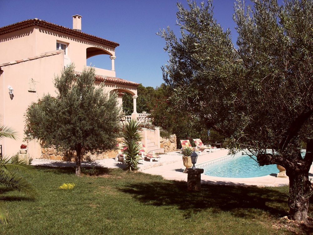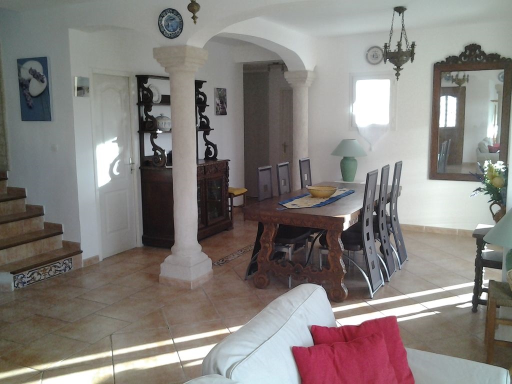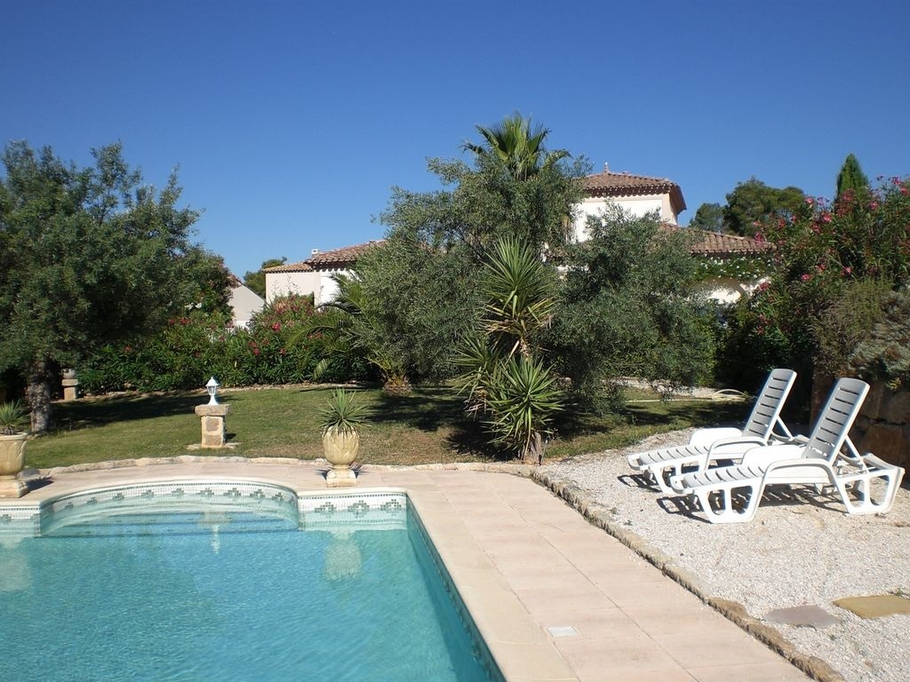 Le salon spacieux s’ouvre sur une grande terrasse et un grand jardin verdoyant avec des oliviers, des palmiers et une piscine de 10 m x 5 m avec alarme. La piscine est assez grande pour pouvoir vraiment nager, son eau est en été à la température idéale. L’extérieur offre meubles de jardin, chaises longues près de la piscine, un barbecue et des zones ensoleillées et ombragées .