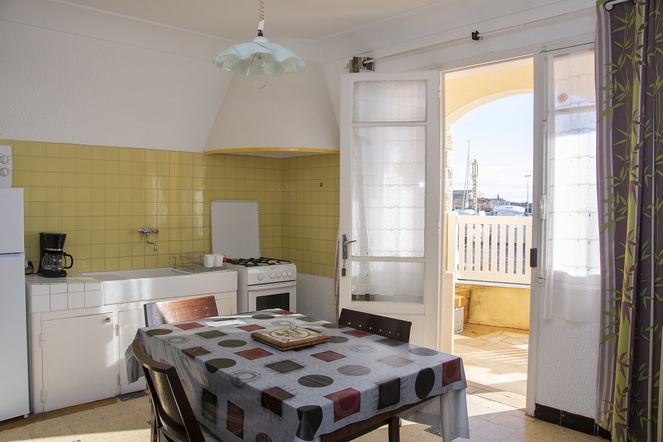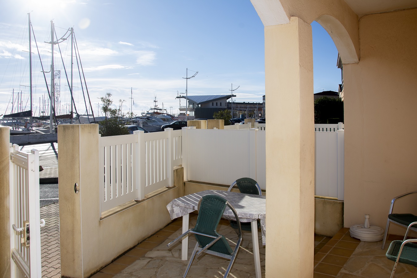Sur le port, à deux pas de la plage et du centre ville, appartement meublé, plain-pied, spacieux et très ensoleillé, pour 4 personnes, une chambre (1 lit 140), 36 m2 de superficie, four à micro-ondes, salon de jardin.