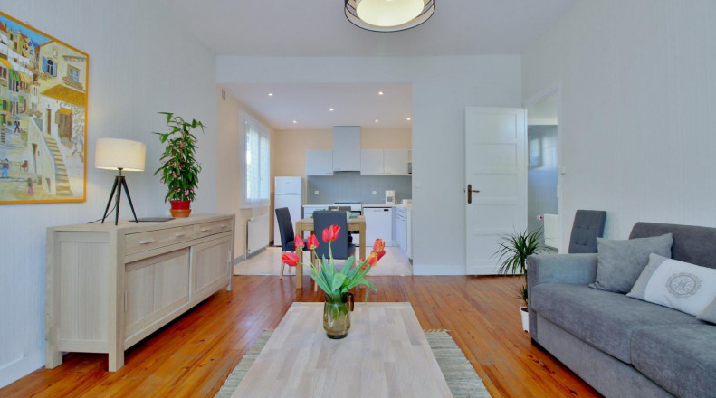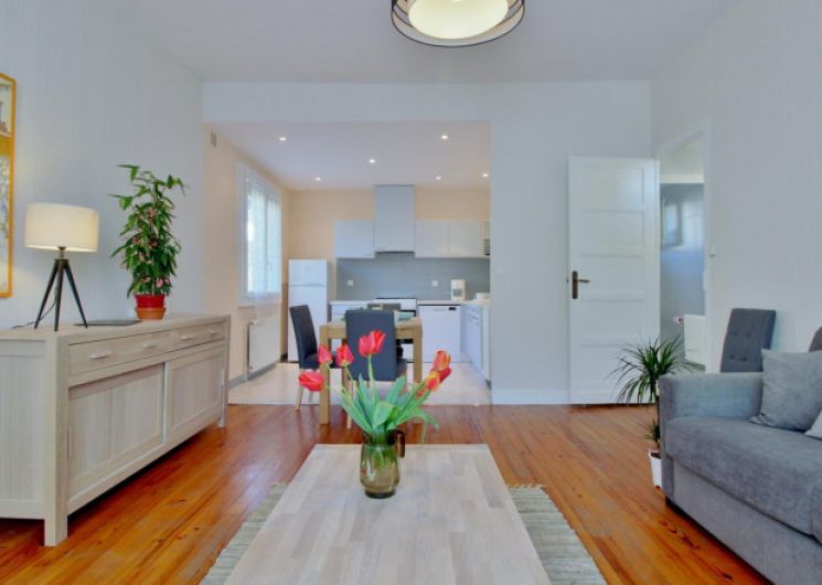 Accès au gîte par 6 marches extérieures. Séjour, cuisine aménagée ouverte, 1 chambre ( lit en 140), salle d’eau avec wc. L’ensemble des pièces se situe sur le même niveau. Espace extérieur avec salon de jardin et barbecue. Chauffage central au gaz compris. Charges comprises. Parking possible dans la rue. La propriétaire en mitoyenneté sera de bons conseils pour toutes vos escapades. .