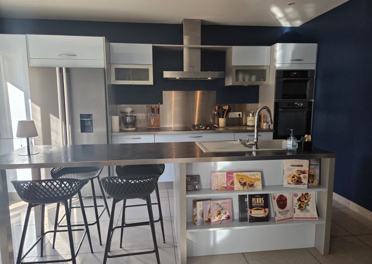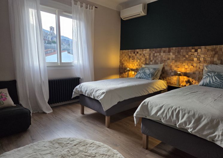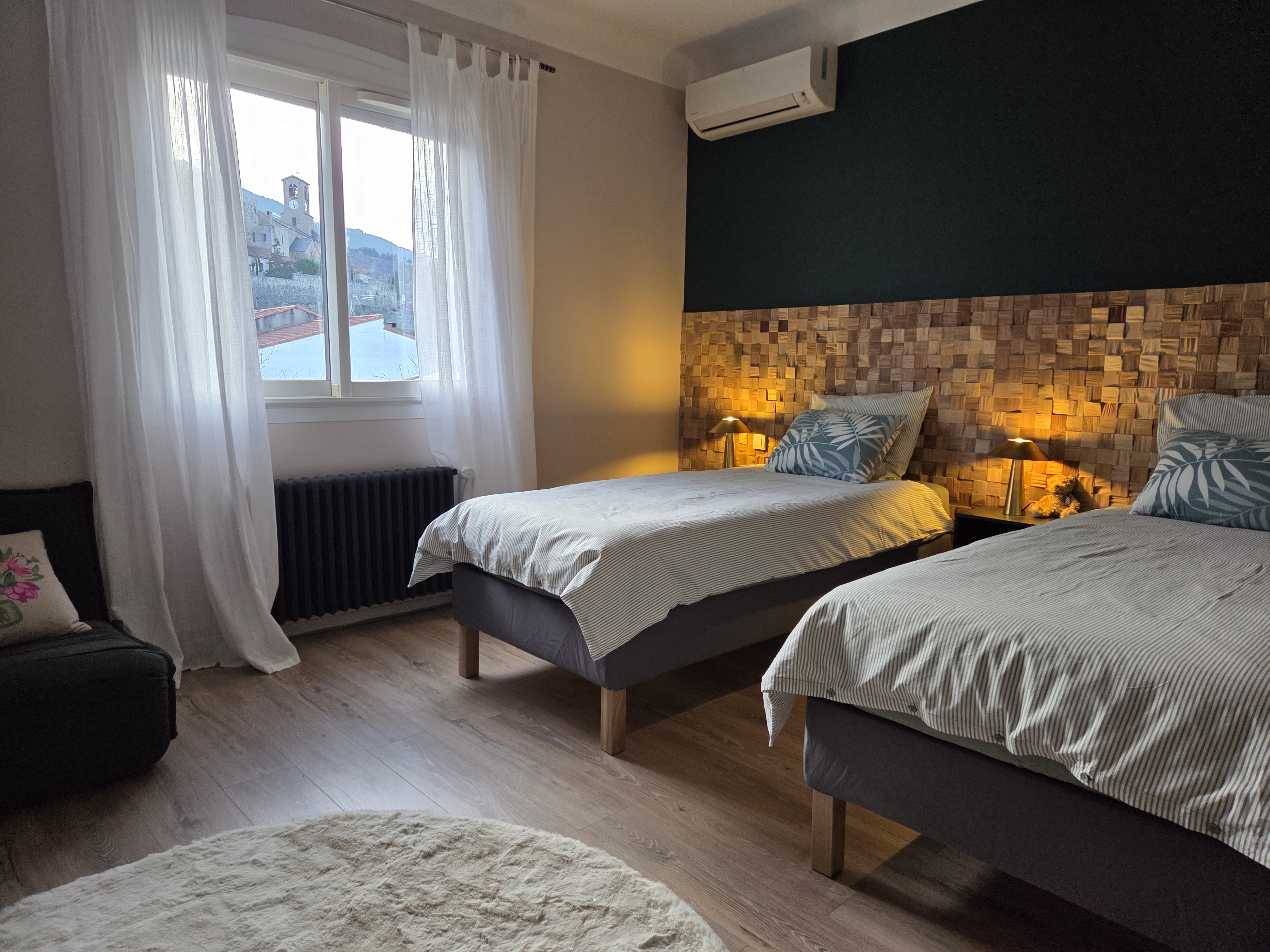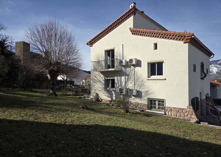 Située dans un quartier calme de Vernet-les-Bains, à proximité du centre-ville, la Villa Les Roses est une maison familiale entièrement rénovée en 2025. Elle offre un cadre moderne et chaleureux pour un séjour reposant au pied du Canigó. Les sentiers de randonnée partent directement de la maison, pour rejoindre la forêt, les cascades ou les crêtes environnantes. Les chambres • Chambre principale : lit 160 cm, vue dégagée sur le Canigó • Seconde chambre : lit king-size 180 cm avec surmatelas (transformable en 2 lits de 90 cm) + couchage d’appoint confortable en 90 cm Équipements & confort : • Climatisation dans toutes les pièces • Cheminée à insert • Cuisine haut de gamme entièrement équipée • Salle vidéo avec grand écran et home cinéma • Douche hydromassante • Piano droit, guitare et enceinte Bluetooth • Terrasse avec plancha • Jardin clos privatif de 500 m² • Garage avec porte automatique • Alarme pour un séjour en toute sérénité