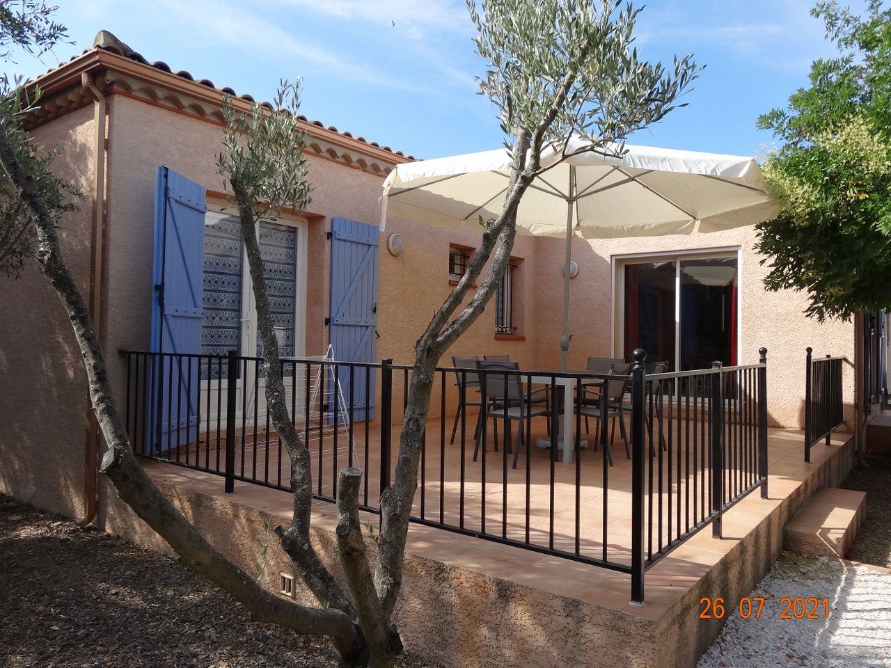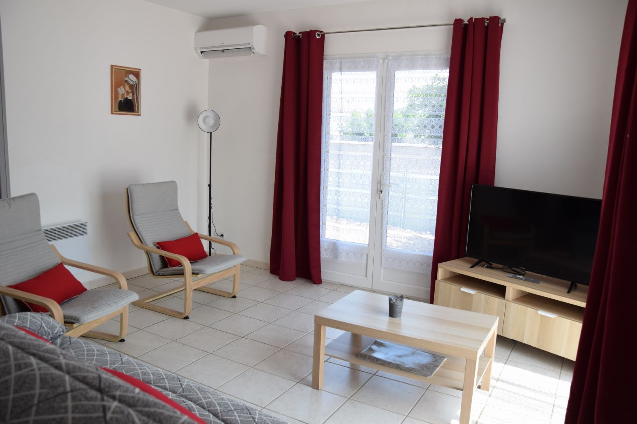Belle villa de 100 m2 de plain-pied, entièrement climatisée, ouvrant sur un jardin de 500 m2 pouvant accueillir 6 à 8 personnes.