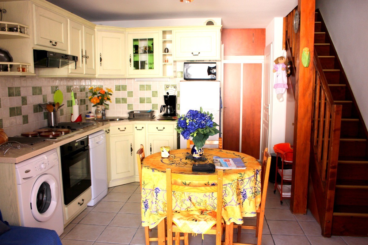 Maison mitoyenne F2 pour 2 personnes avec garage proche de l’Étang de Thau et du centre thermal Charmante maisonnette mitoyenne F2 de 30 m², sur deux niveaux, idéale pour 2 personnes. Elle est située à seulement 900 m d’un établissement thermal, 400 m du centre-ville, et 500 m de l’Étang de Thau. À 7 km des plages méditerranéennes, elle est parfaite pour une escapade détente ou un séjour thermal. La maison dispose d’une cuisine entièrement équipée avec de nombreux électroménagers tels que réfrigérateur, congélateur, four, micro-ondes, lave-linge, lave-vaisselle, mixeur, hachoir, fer et table à repasser. Le salon offre un espace confortable avec canapé BZ de 120 cm, télévision, lecteur DVD, et connexion WI-FI. La salle d’eau, située au rez-de-chaussée, est équipée d’un sèche-cheveux pour votre confort. Les WC sont séparés. À l’étage, la chambre dispose d’un lit de 140 cm pour un sommeil paisible. À l’extérieur, vous profiterez d’un terrain clos avec terrasse, salon de jardin et barbecue, idéal pour vos repas en plein air. Garage et parking privé sont inclus pour faciliter vos déplacements. Réservez dès maintenant cette maison pour 2 personnes à deux pas des thermes et de l’Étang de Thau !