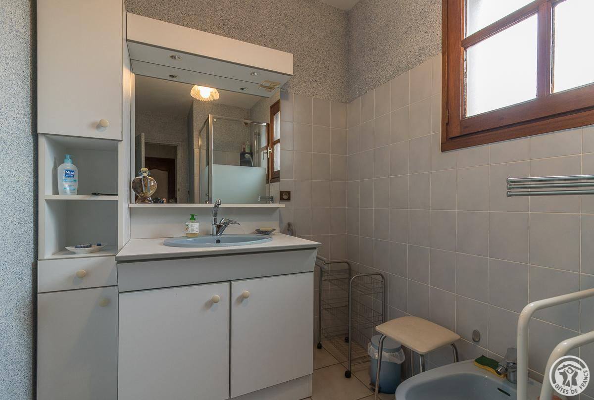 – Au rez-de-chaussée : entrée, cuisine indépendante, grand séjour, 1 chambre (1 lit pour 2 personnes en 140cm), salle de bains, WC avec lave-mains, cellier.