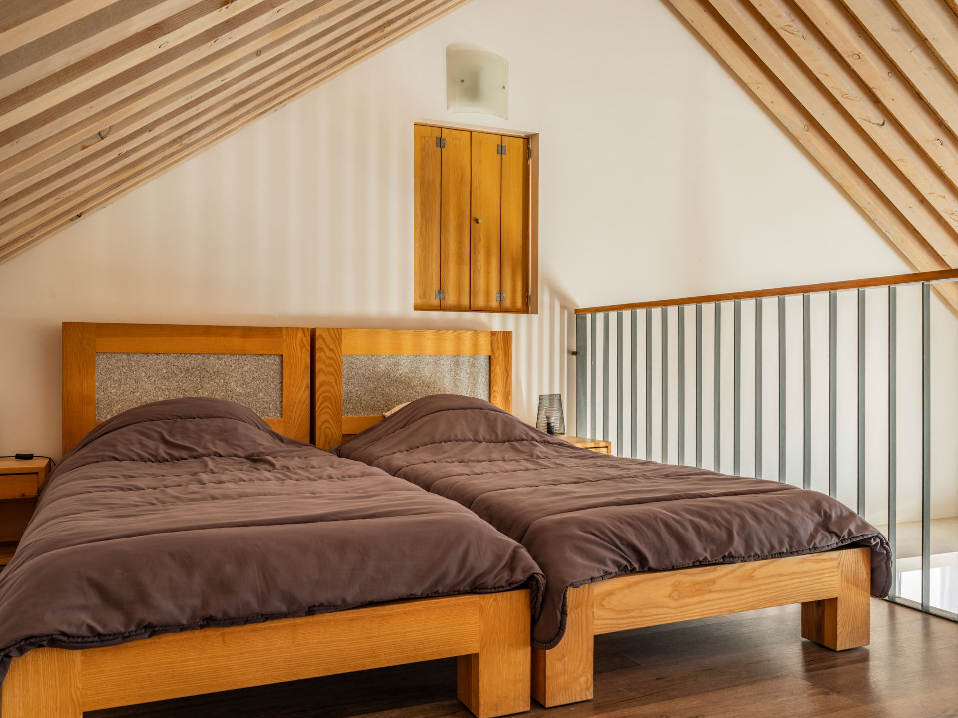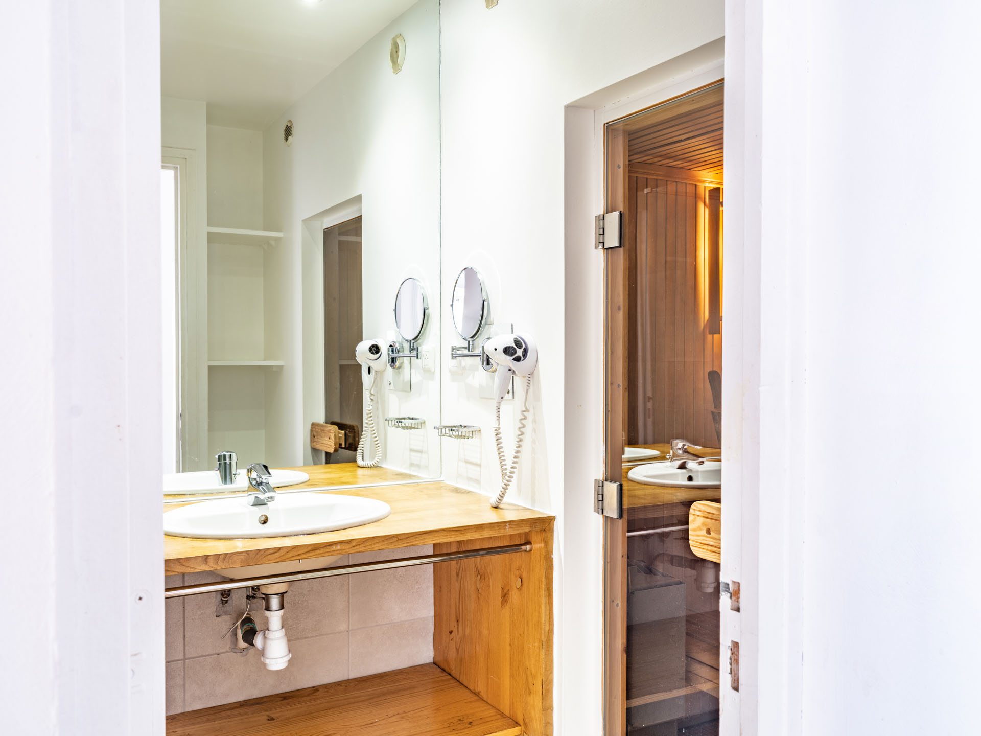 Avec une très belle capacité de couchage, ce gîte avec sauna privatif est un très grand duplex accueillant 8 personnes. Il dispose de : Une chambre avec lit double Une chambre avec 2 lits simples Une mezzanine avec 2 lits simples Un salon avec canapé Sauna privatif Cuisine entièrement équipée Salle d’eau avec toilette Coin repas Terrasse privée et mobilier de jardin