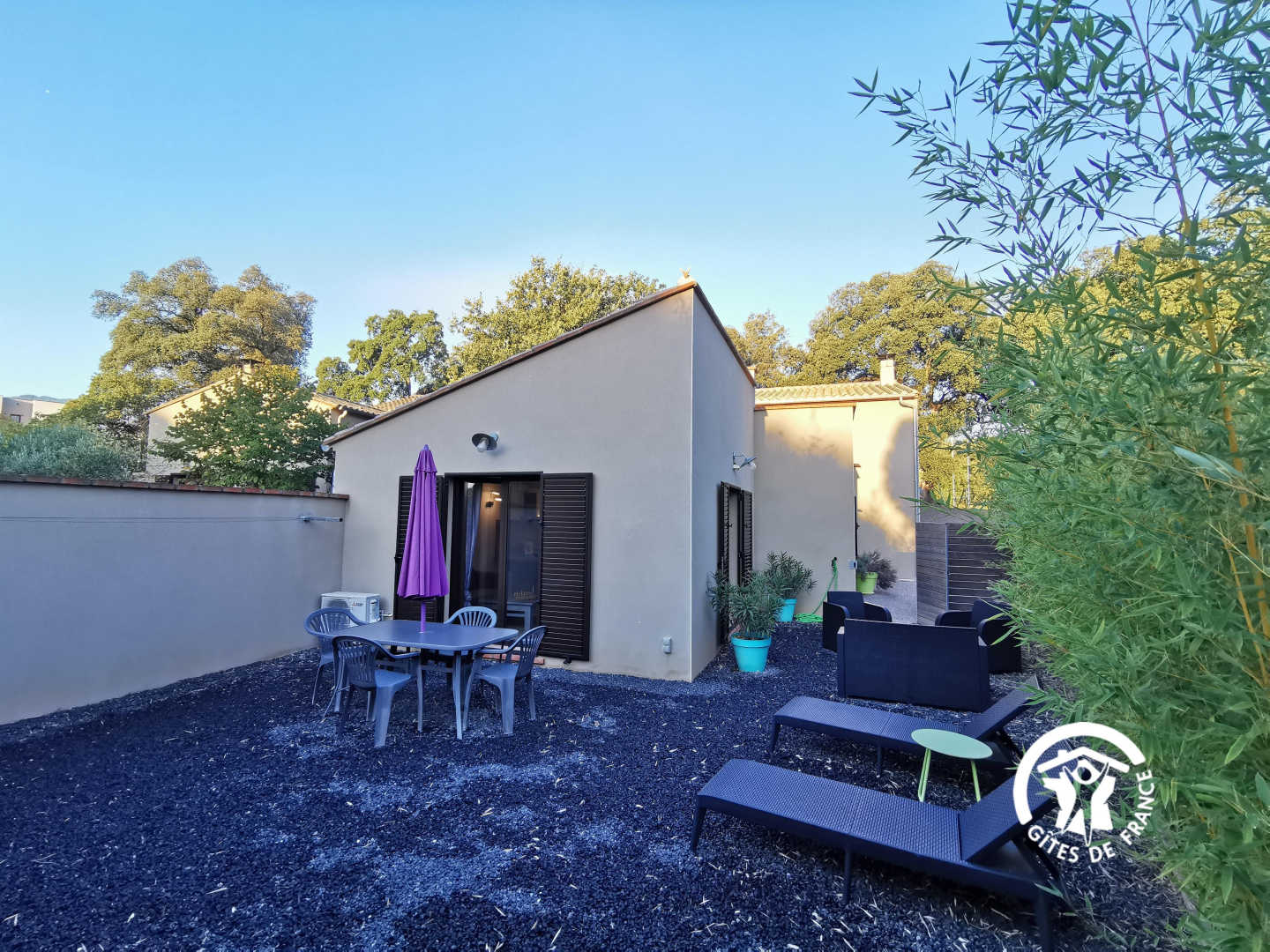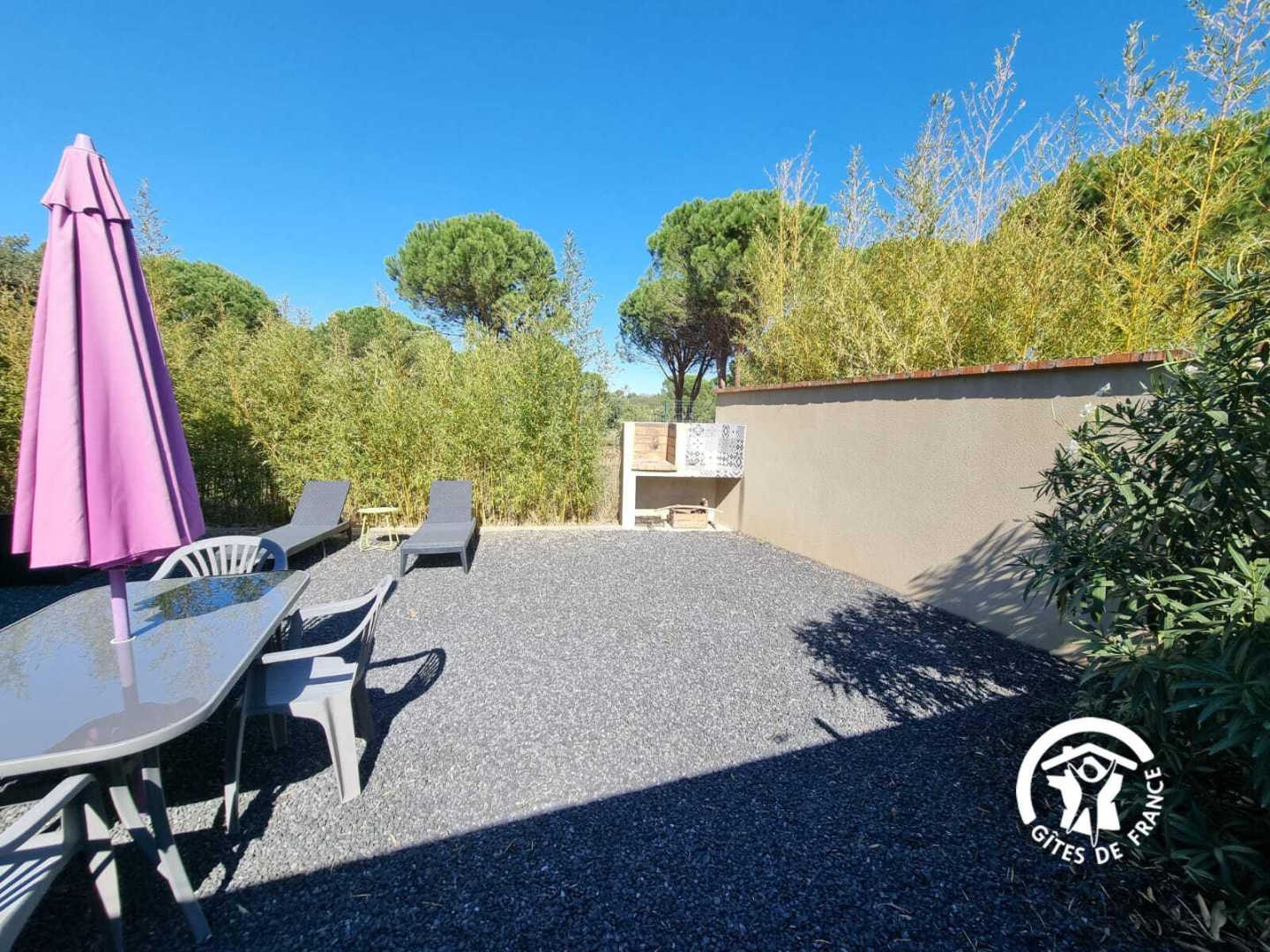 Au pied des Albères, gîte moderne de plain-pied au calme, avec jardin privatif clos. A 600 mètres du village et de ses commodités, à l’écart, dans un site calme, joli gîte moderne de plain-pied pour 4 personnes, composé – d’une pièce de vie avec cuisine équipée ouverte sur le jardin privatif, clos et sans vis à vis, avec mobilier de jardin et barbecue. Idéal pour des repas conviviaux et le farniente des journées chaudes. – 2 chambres : 1 lit 160*200 ; 2 lits 90*190 – grande salle d’eau + espace buanderie – wc indépendant Parking privatif ombragé sur place un deuxième gite indépendant est présent sur le site. Animaux Un seul animal (chien ou chat) accepté sous réserve des règles suivantes : – l’animal ne doit pas rester sans surveillance dans le gîte – accès interdit aux canapés et aux lits – chien de catégorie 1 ou 2 interdit ; animaux exotiques interdits