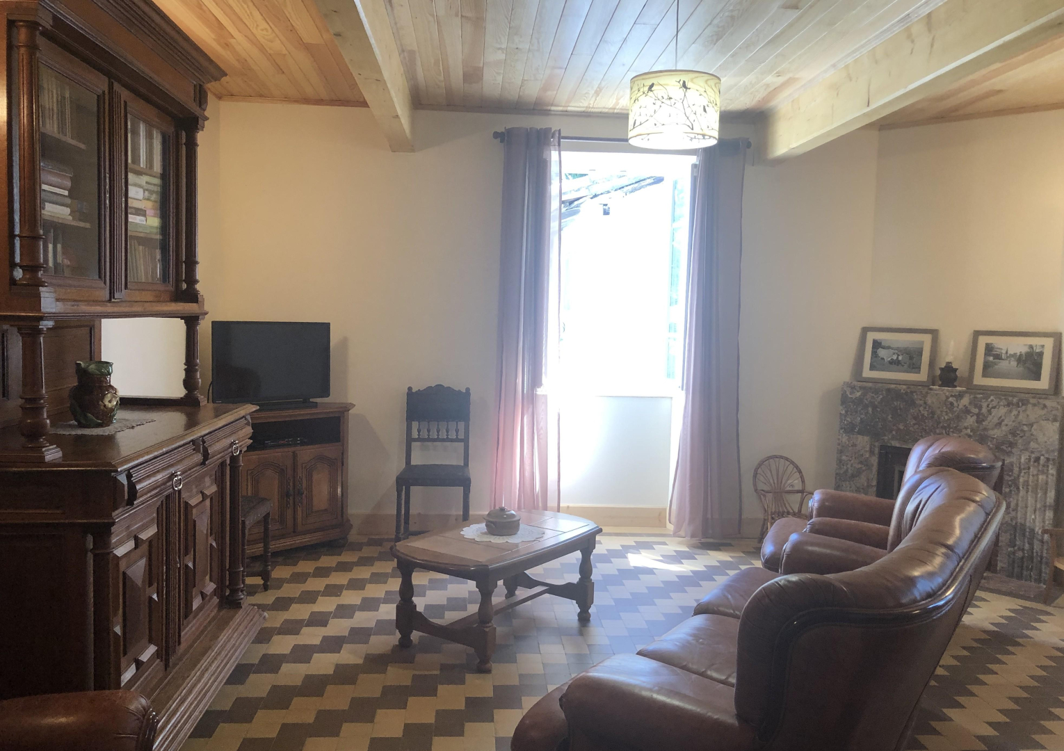Rez-de-chaussée : grande cuisine toute équipée (réfrigérateur, four, plaque à induction, lave-vaisselle, cafetière filtre + cafetière à dosettes…), salon (tv, canapé, fauteuils), wc.