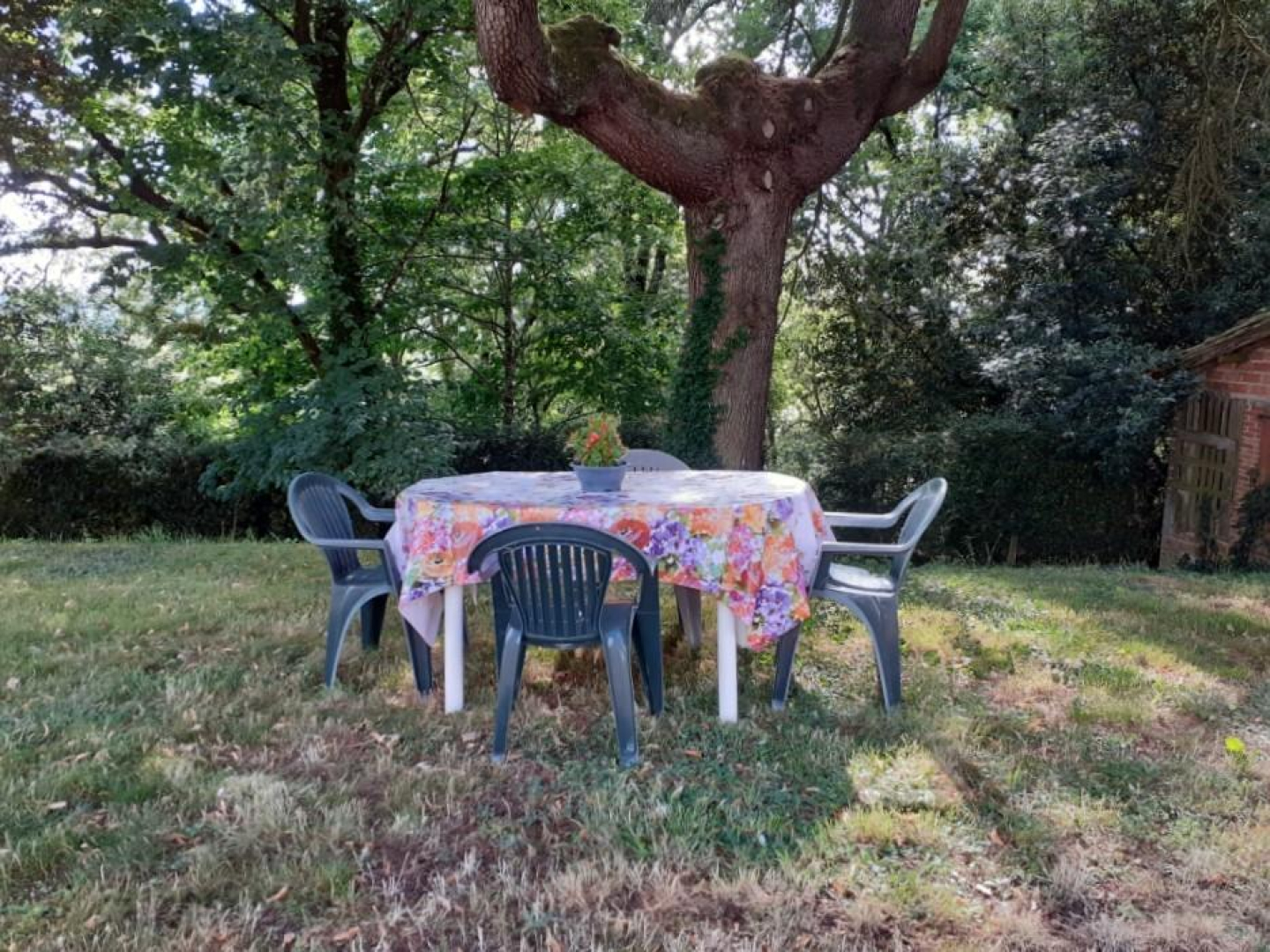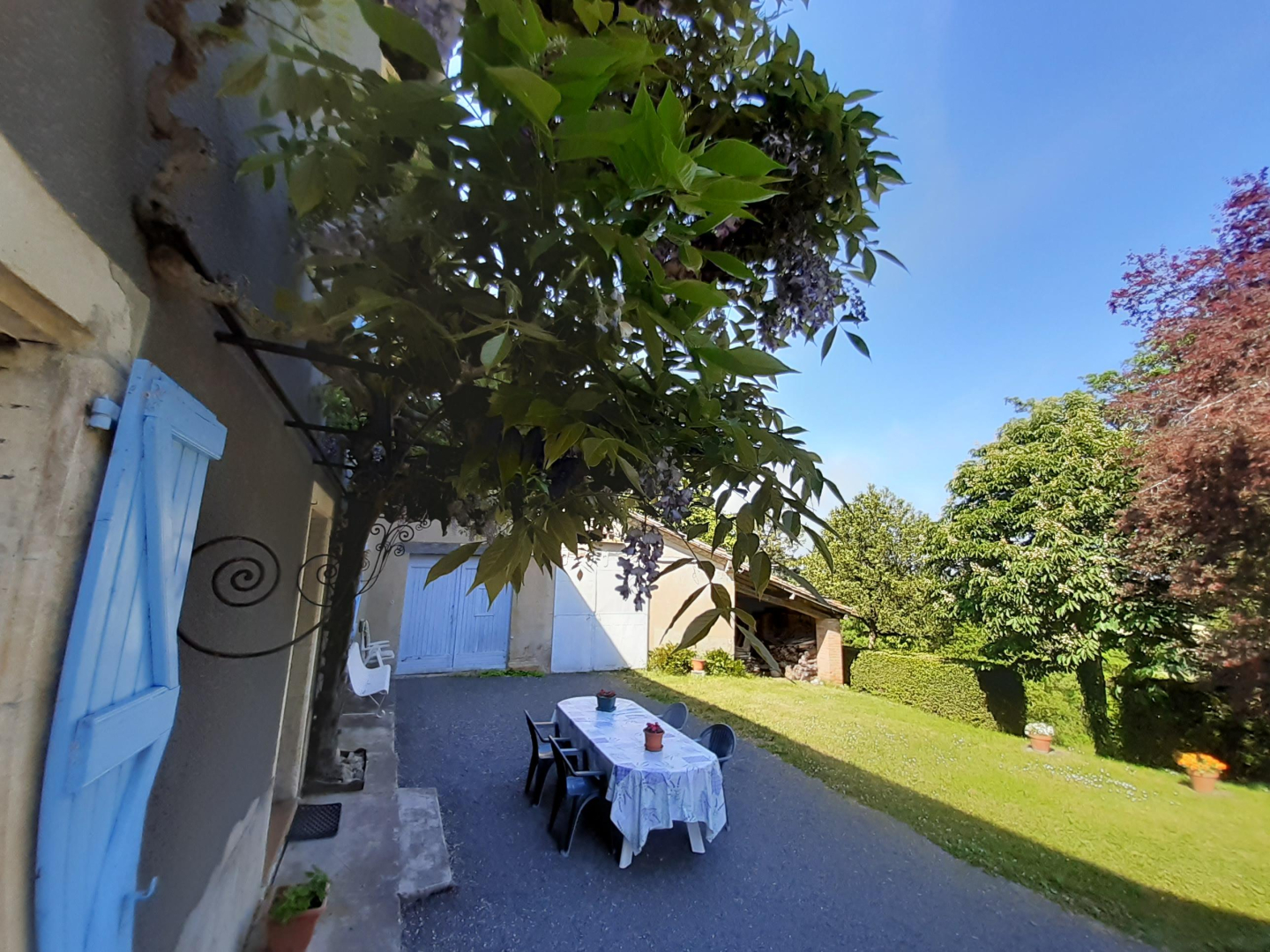 Jardin avec vue sur les coteaux de Gaillac, cour, salon de jardin, barbecue.