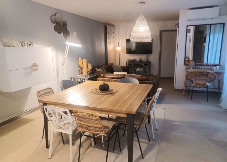 Situé à seulement 80 mètres des plages de Carnon, ce gîte indépendant vous offre un cadre idéal pour des vacances en famille ou entre amis. À proximité immédiate, vous pourrez flâner le long des quais du port, découvrir les restaurants animés, ou explorer la zone Natura 2000, véritable havre de biodiversité. Le Parc des Expositions de Montpellier, l’aéroport et la gare sont également tout proches, facilitant vos déplacements. Ne manquez pas le château des comtes de Melgueil à Mauguio, témoin du riche passé médiéval de la région. La maison, climatisée, propose une ambiance familiale et chaleureuse. Elle se compose d’une cuisine ouverte entièrement équipée (four, micro-ondes, lave-vaisselle, réfrigérateur, congélateur, bouilloire, cafetières à filtre et Nespresso), d’un salon avec télévision et canapés, d’une salle à manger conviviale, de deux WC indépendants, ainsi que de quatre salles d’eau avec douche et vasque. Le gîte dispose de 4 chambres au rez-de-chaussée : Chambre 1 : lit double 160×200, salle d’eau privative Chambre 2 : lit double 160×200, salle d’eau privative Chambre 3 : lit double 140×200, salle d’eau privative Chambre 4 : canapé convertible systeme rapido avec vrai matelas 160×200 À l’extérieur, vous profiterez d’un jardin privé, d’une terrasse aménagée avec salon de jardin, barbecue à charbon . Le stationnement est assuré grâce à un parking privé à l’intérieur de la propriété. Le calme du quartier, en ville mais à l’écart de l’agitation, garantit un séjour reposant. Ce gîte séduit par sa décoration authentique et raffinée, son équipement complet, son bel extérieur et sa situation privilégiée, au calme et proche des commodités… idéal pour les familles ou les amis en quête de confort, de découverte et de détente !