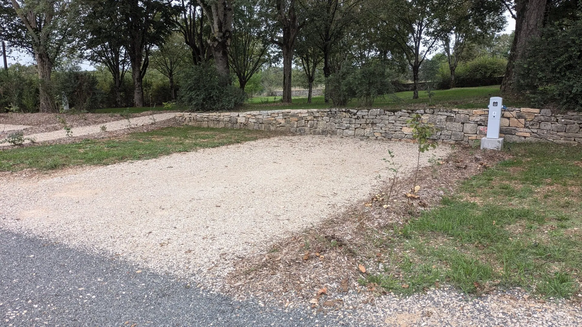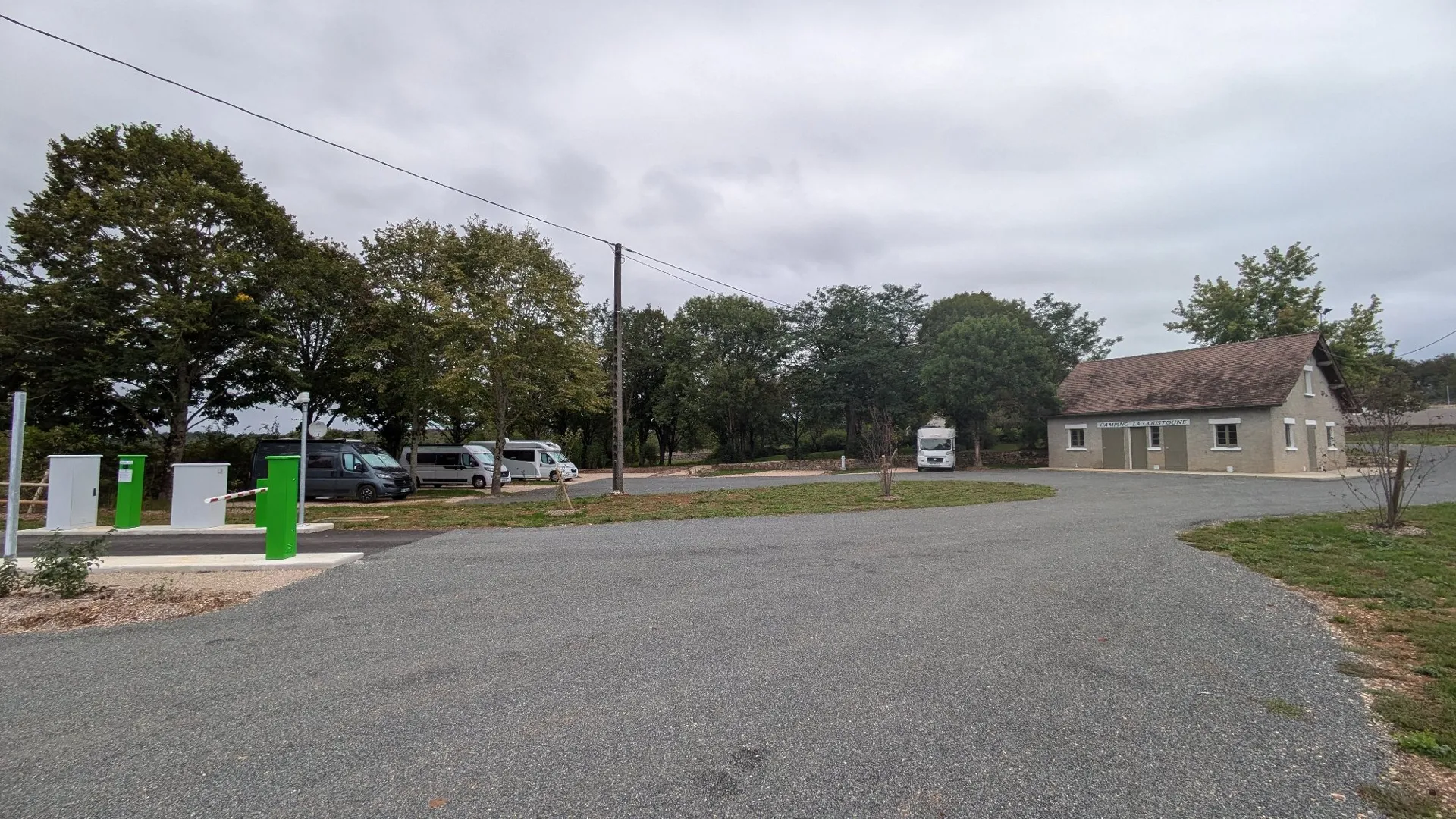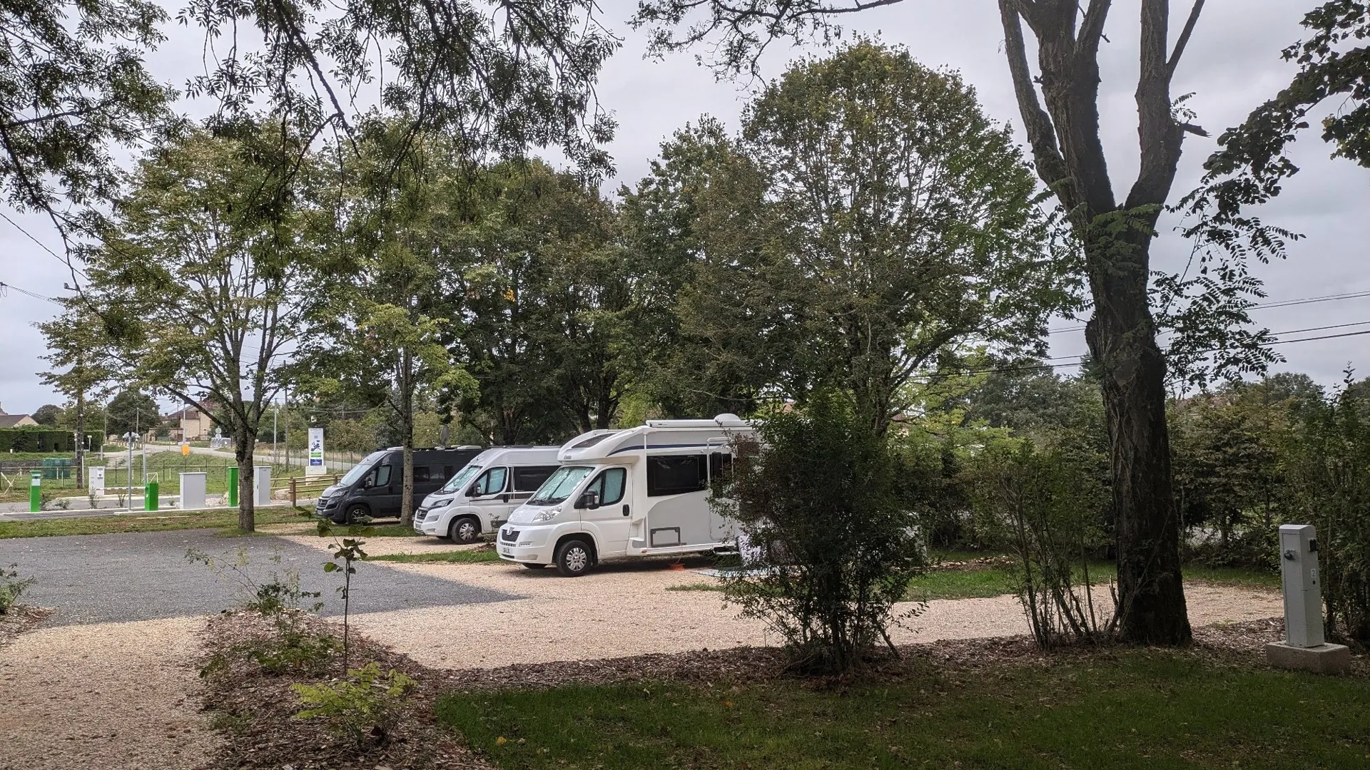 Aire de camping-car dans un cadre verdoyant et ombragé proche de la Bastide de Villeneuve d’Aveyron.