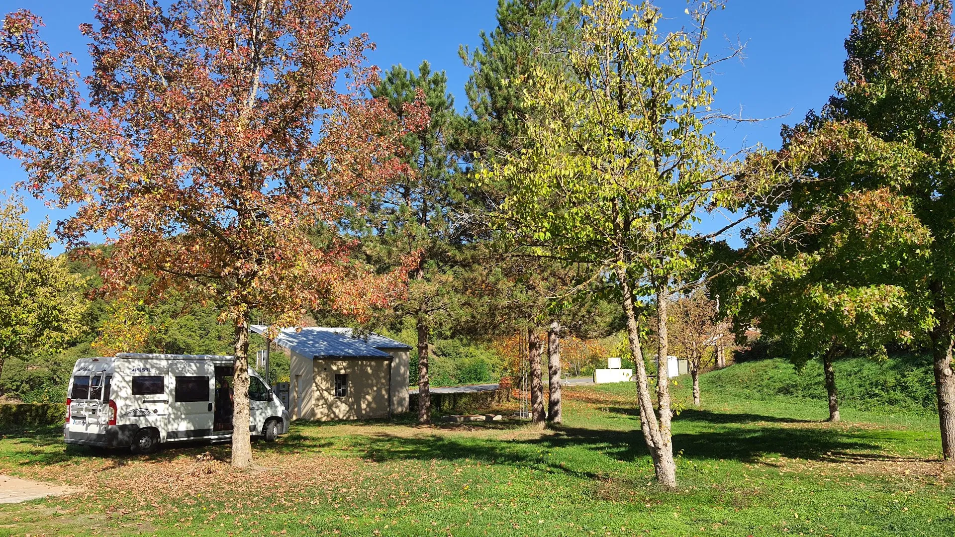 Installée sur un terrain partiellement ombragé, elle propose 10 emplacements avec à disposition eau potable ainsi qu’un point de vidange des eaux usées. Pas d’électricité.