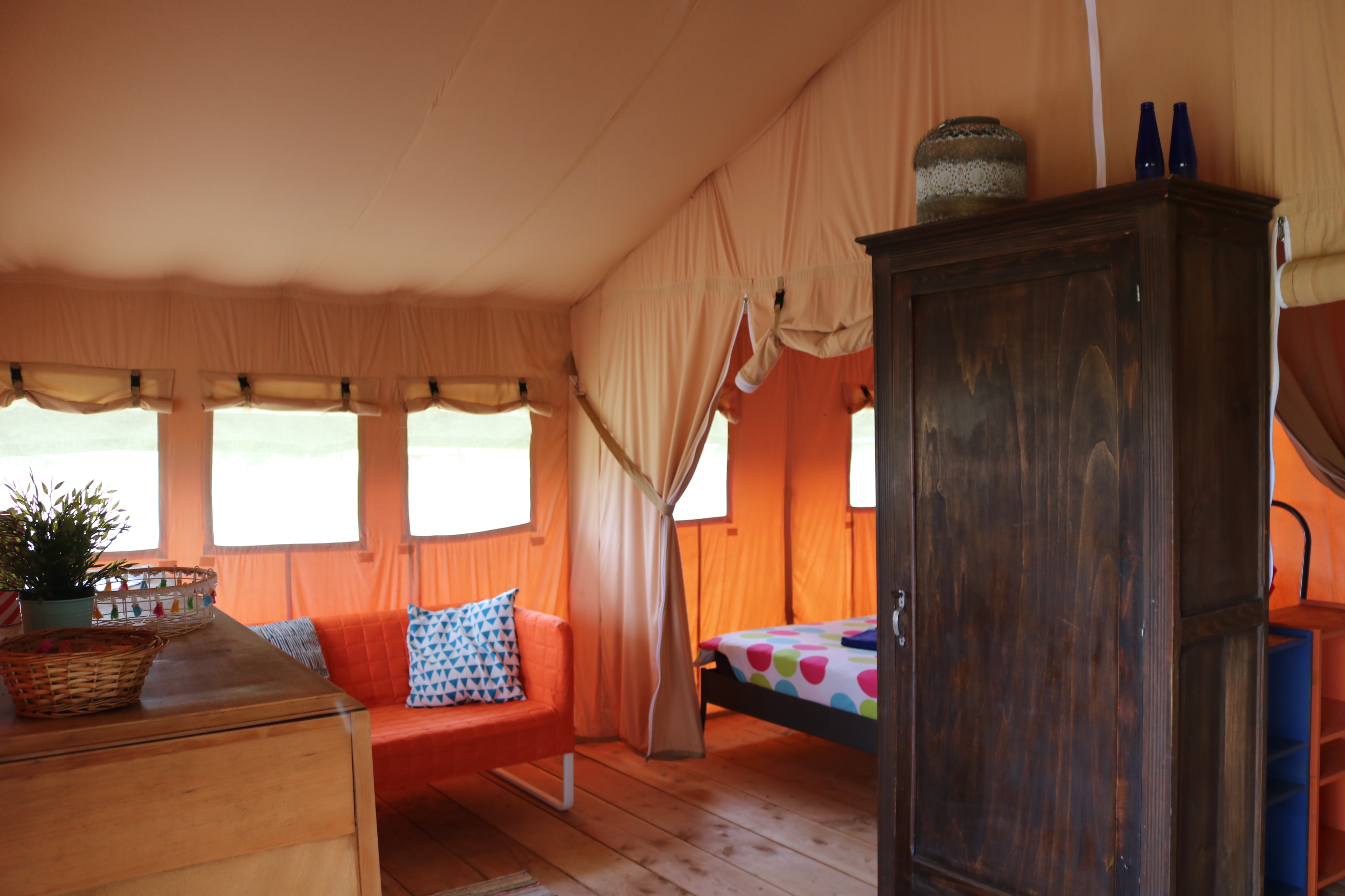 Camping rural: Petit terrain avec max. 12 emplacements, électricité disponible. Dans la haute saison, les emplacements sont équipés d’une table pique nique, 2 chaises confortables, un parasol et électricité. Et le petit-déjeuner, servi devant la maison chaque matin…. c’est inclus! Tentes safari: Sur le terrain se trouvent 3 tentes safari toute équipées pour ceux qui ne préfèrent pas monter leur propre tente. Chaque tente mesure 5×5 m, elle est équipée des lits confortables, d’un frigidaire, d’une plaque de cuisson, d’un ameublement de jardin etc.. Une salle d’eau privative avec douche, lavabo et wc est disponible à 50m. La tente peut héberger 2 adultes et 2 enfants. Il est possible de poser un lit supplémentaire ou un lit bébé. Location par semaine.