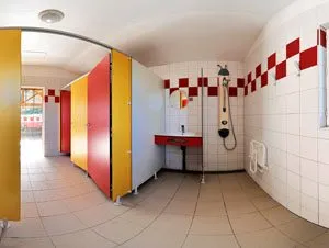 Le bloc sanitaire et l’espace vaisselle sont aménagés pour être accessibles et utilisés par les personnes en fauteuil roulant.