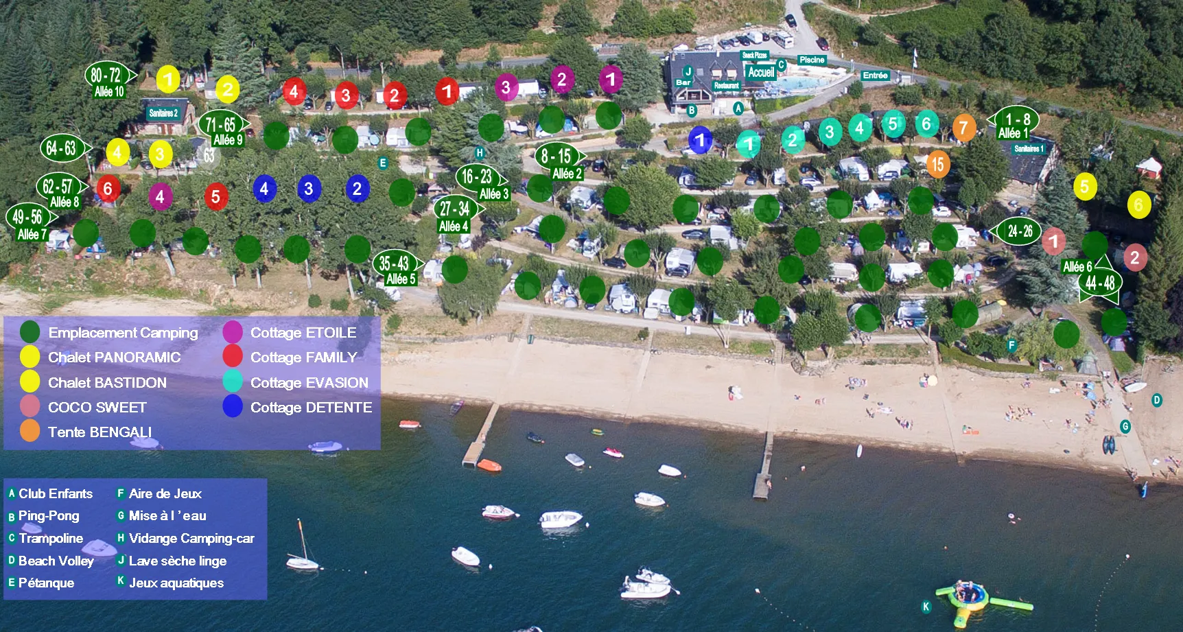 vue aérienne camping Beau-Rivage du lac de Pareloup – accès direct lac de pareloup – accès direct plage lac de pareloup – mise à l’eau lac de pareloup – © camping Beau-Rivage du Lac de Pareloup