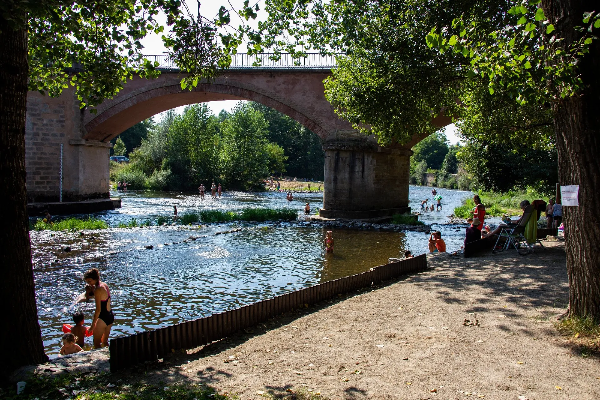 Dans le camping : plage privée au bord du Lot : baignade, pêche et « farniente », animations enfants et adultes en haute saison, Wifi gratuit.