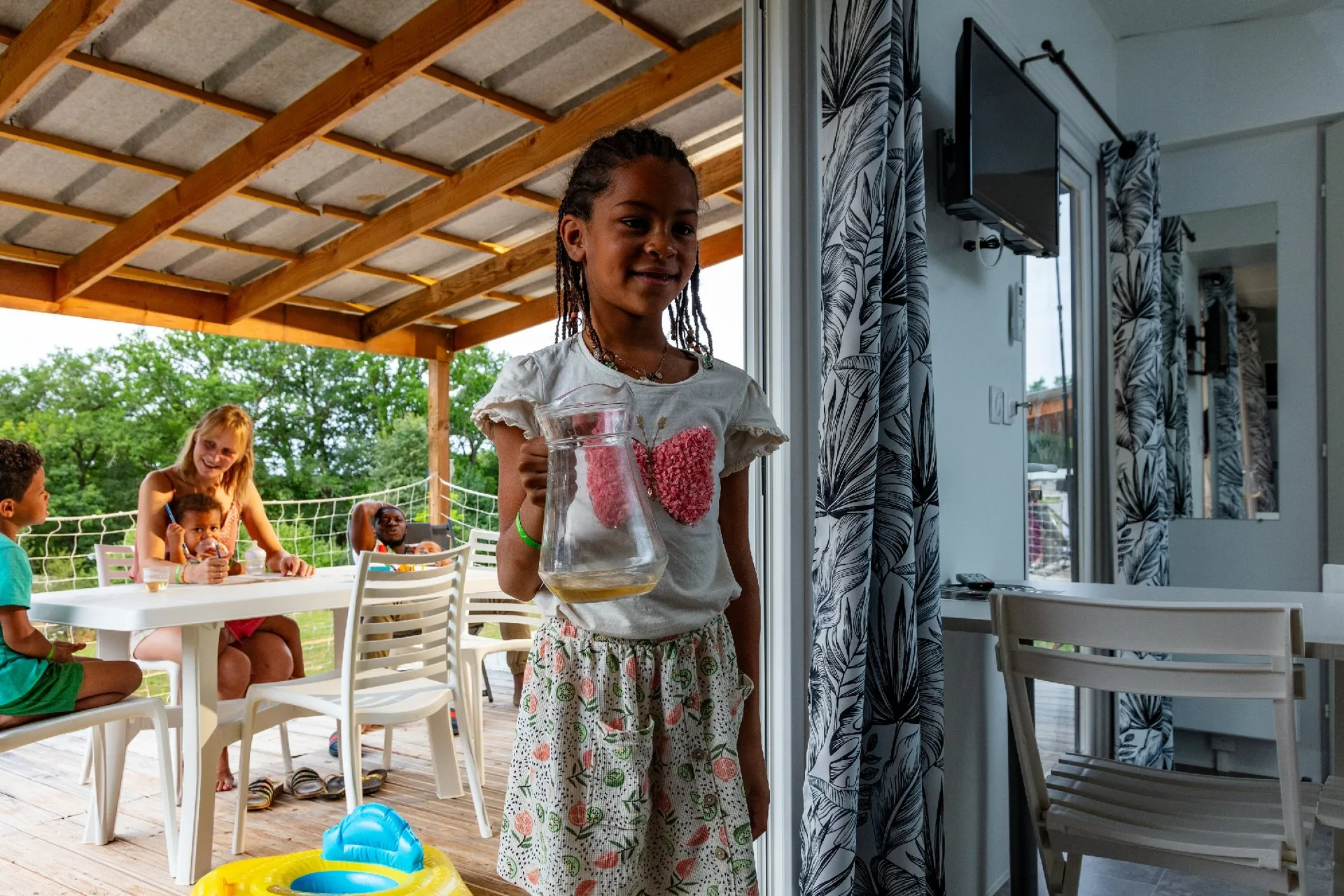 N’oublions pas de mentionner la piscine couverte, tellement agréable quel que soit le temps et les toboggans où s’amusent enfants et parents.