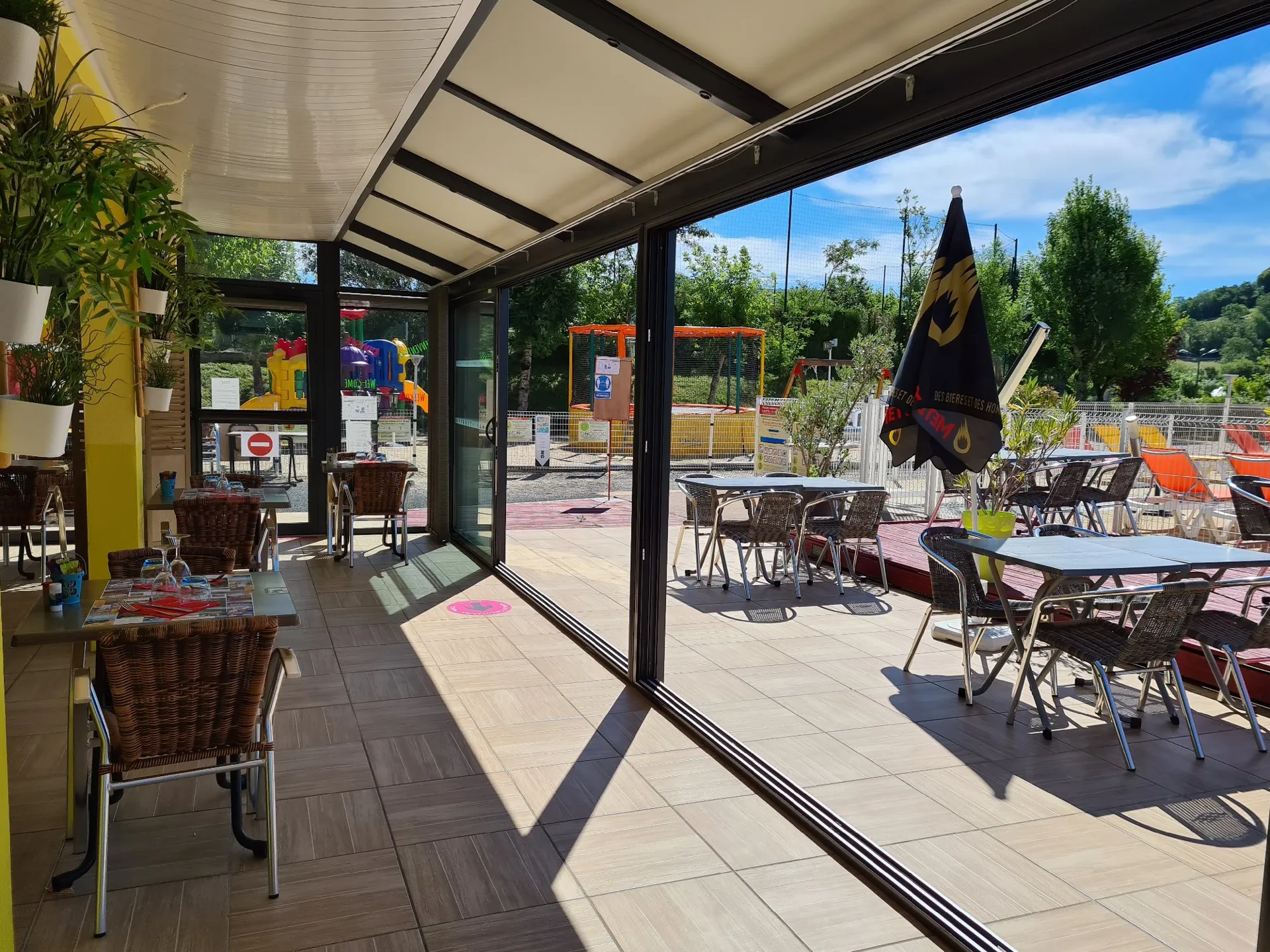 Du 1 avril au 15 septembre, vous pourrez profiter de notre piscine et pataugeoire couvertes/découvertes chauffées, du service pain et viennoiseries cuits sur place, du bar-restaurant que ce soit en salle ou en terrasse, à emporter ou à livrer mais aussi de l’espace détente avec SPA, sauna et lit hydro-massant (sur réservation avec supplément), de l’espace remise en forme, aire de jeux, salle TV, bibliothèque, tennis de table, boulodrome, prêt de jeux. A deux pas, deux courts de tennis. Vous pourrez également charger votre véhicule électrique en toute sécurité (payant).