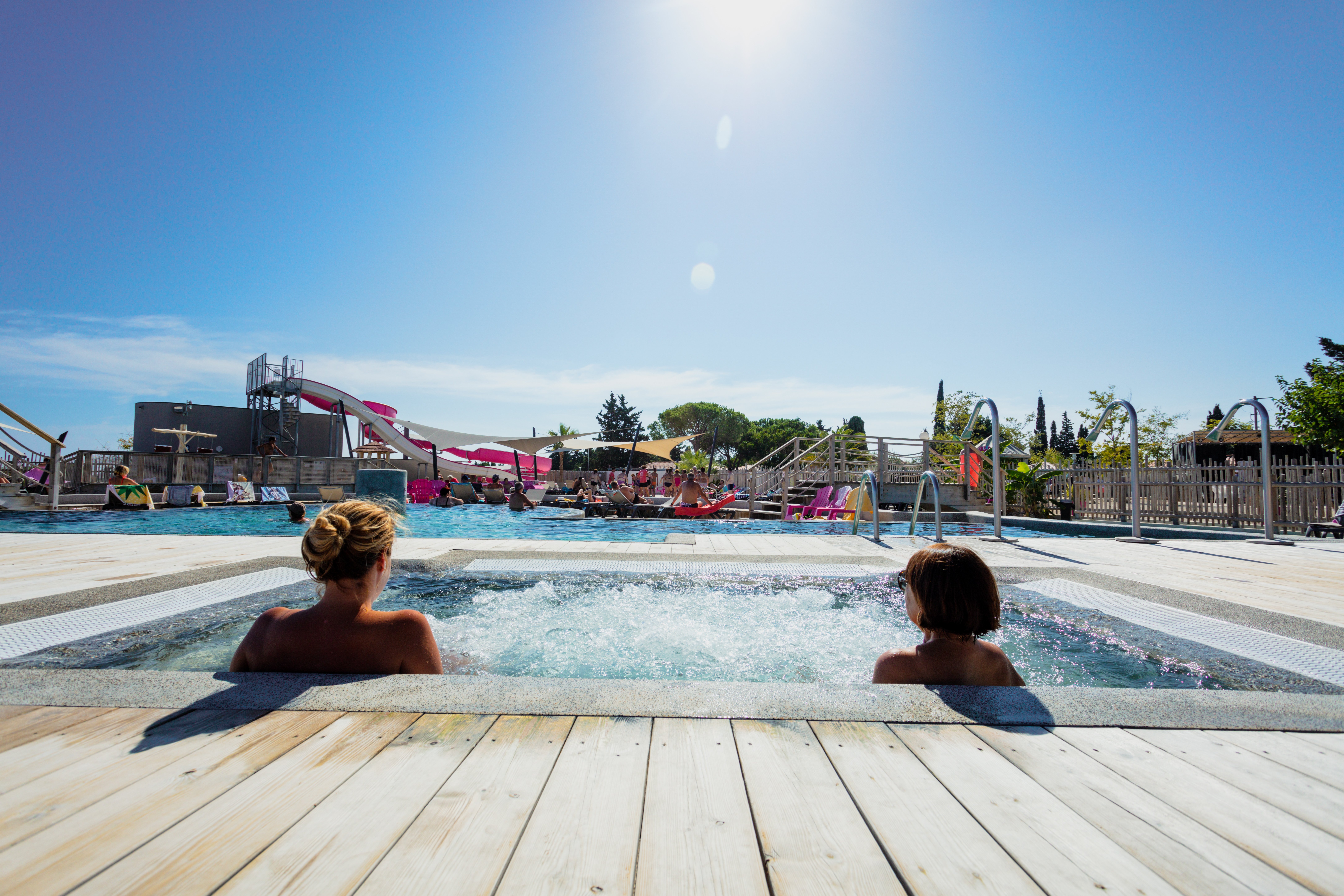 Nouvel espace aquatique chauffé ouvert d’avril à novembre, pataugeoire, toboggan, jacuzzis.