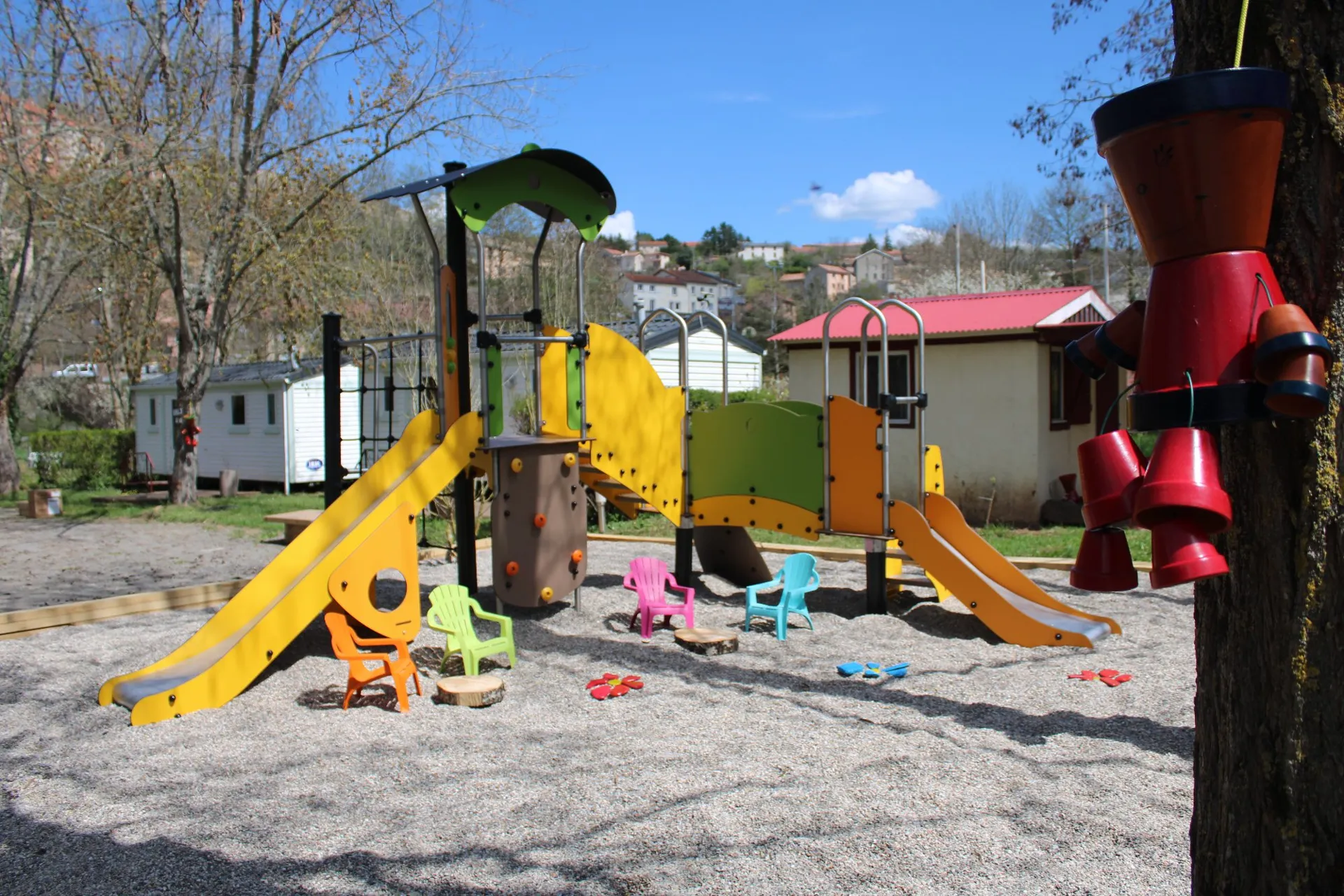 Aire de jeux du camping située devant la terrasse de la guinguette. Avis aux parents ! – © Camping Vert Lavande