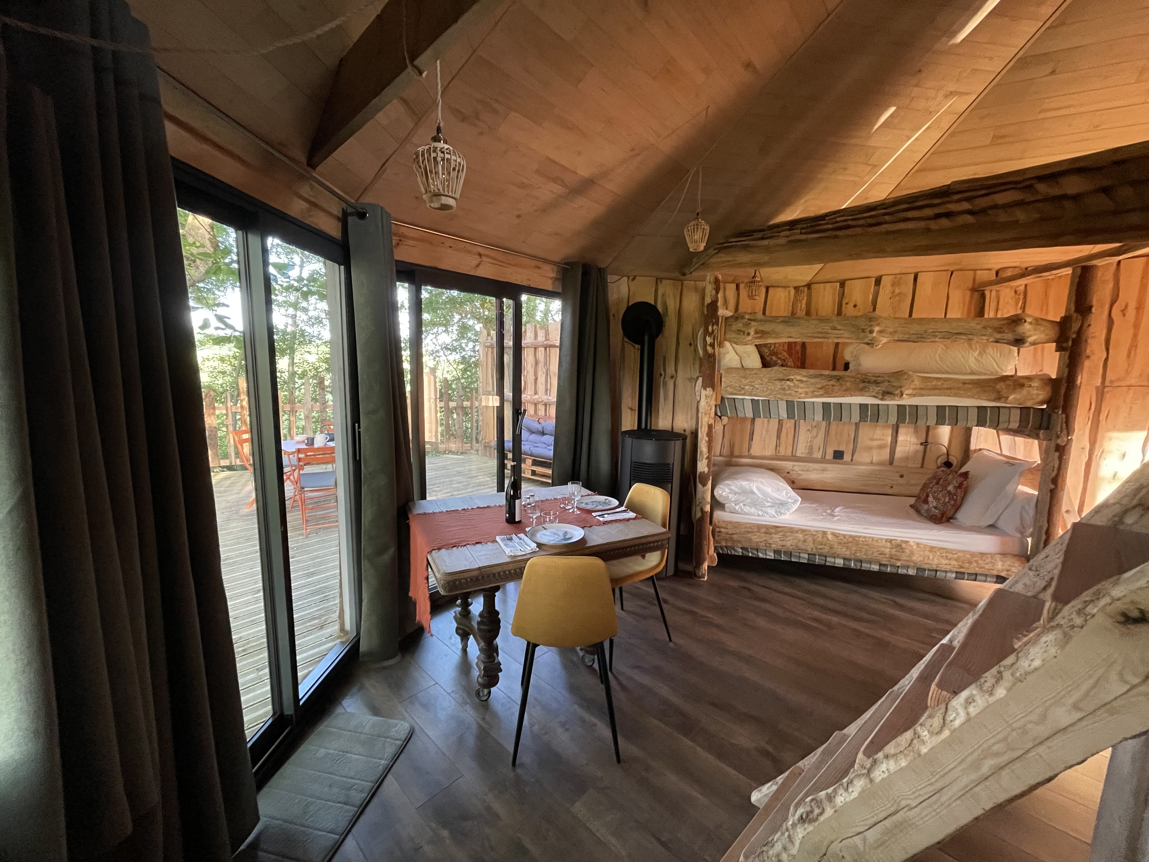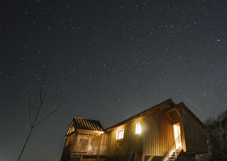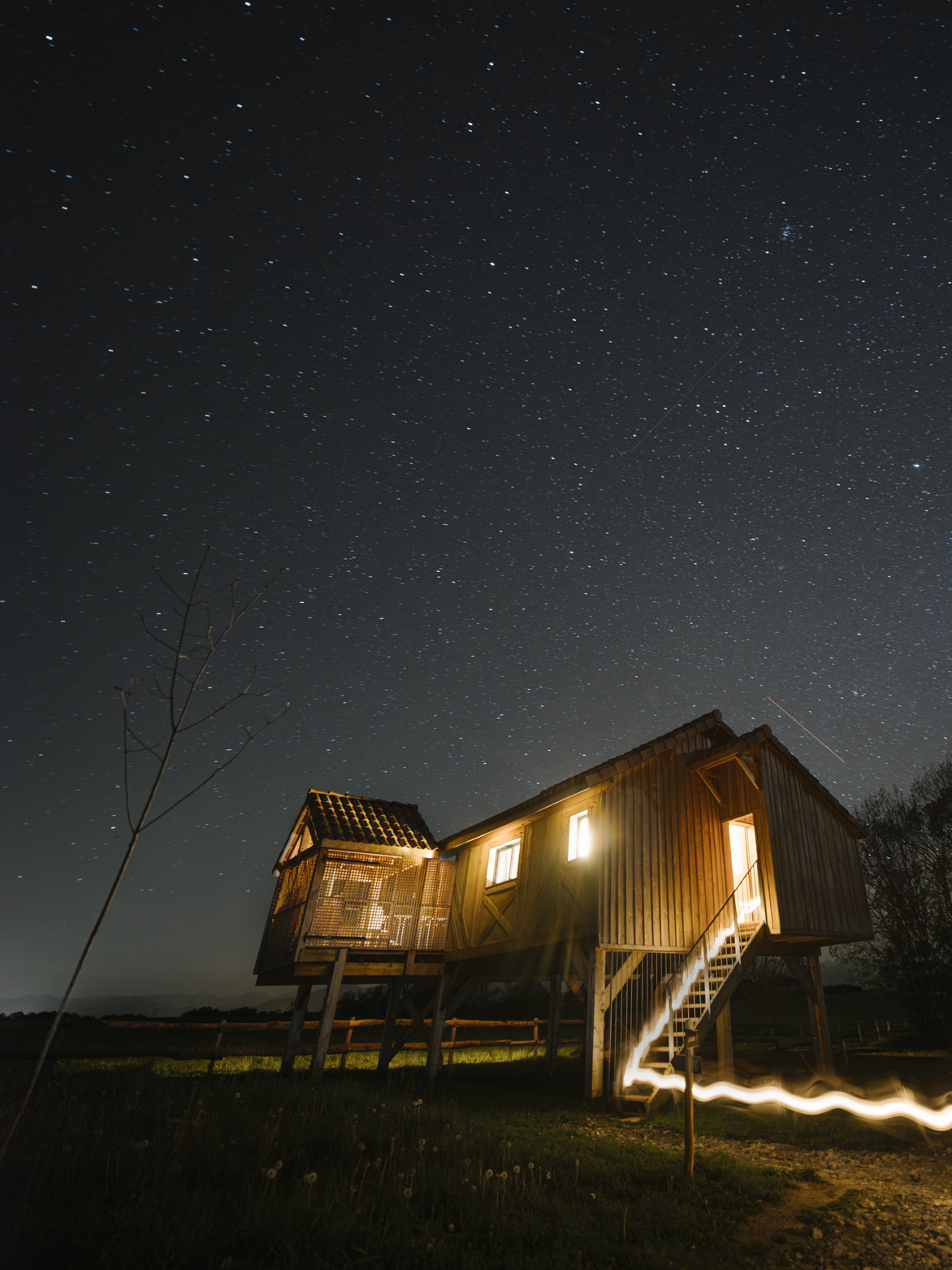 Venez prendre de la hauteur perché dans une cabane de fée « hadette » entourée de frênes et d’aulnes pour une douce nuit étoilée !!