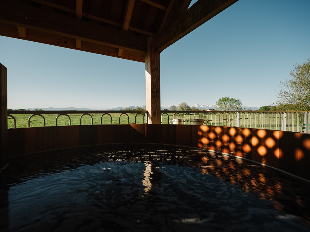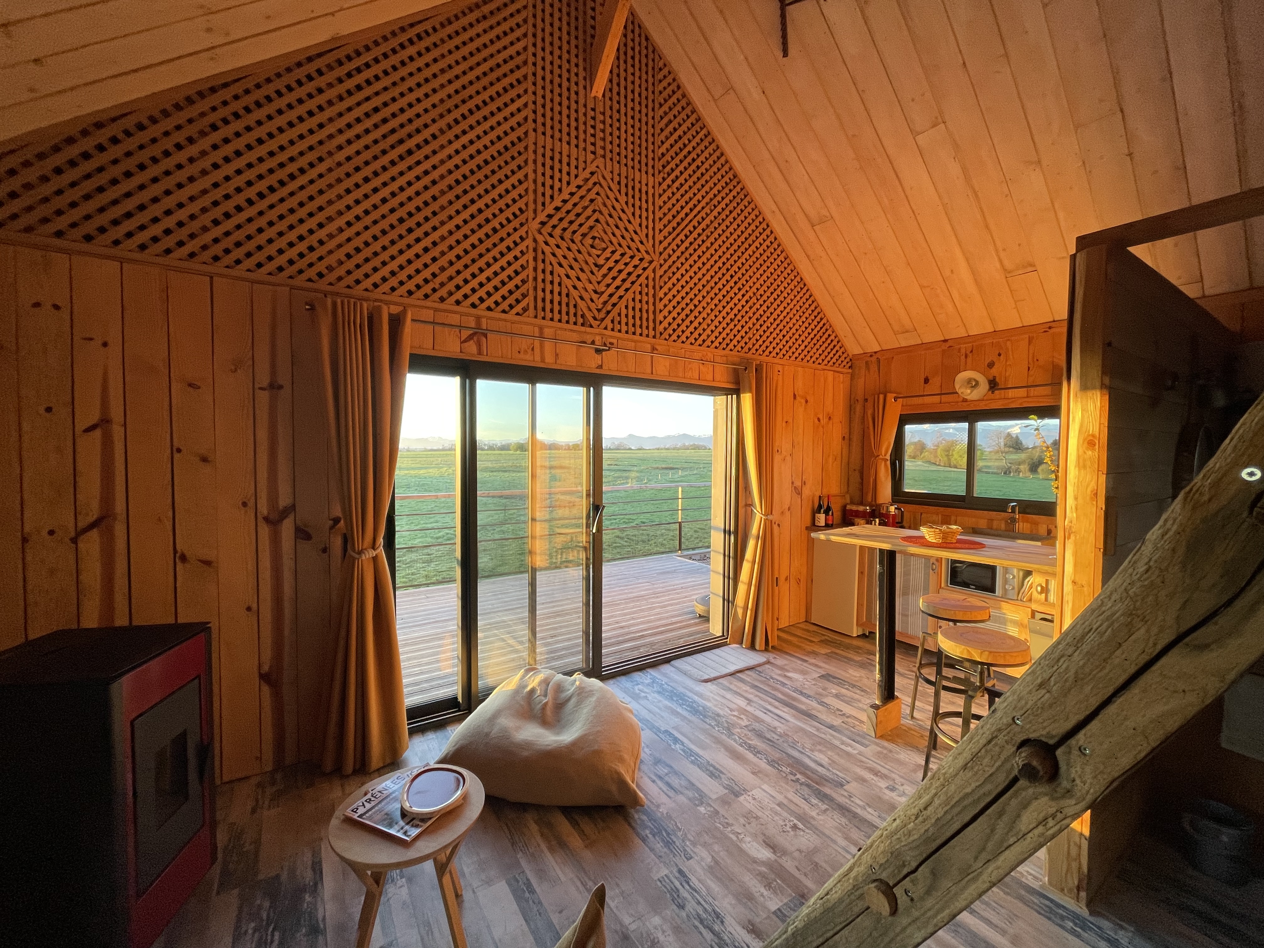 Les cabanes « CHEZ LIZA », « LA GRANGE » et «AÏGA-LUA» pour 2 personnes se situent dans un petit hameau avec une vue imprenable sur les Pyrénées avec une superficie de 34 m² sur 2 niveaux, comprenant une chambre avec un lit en 180 et un coin nuit avec 2 lits en 90, une salle de bain avec WC séparés, un coin kitchenette équipée (plaque de cuisson, frigo, machine à café, bouilloire) et un poêle à granule. La cabane « MERISIA » pour 4 personnes se situe dans un petit hameau au cœur de la forêt entourée d’arbres et vous offre une parenthèse enchantée en tout intimité. Elles sont également dotée d’une terrasse avec sa table et ses chaises ainsi qu’un bain nordique privatif. Un parking est à disposition des clients et il y a la possibilité de commander un diner ou une assiette gourmande. .