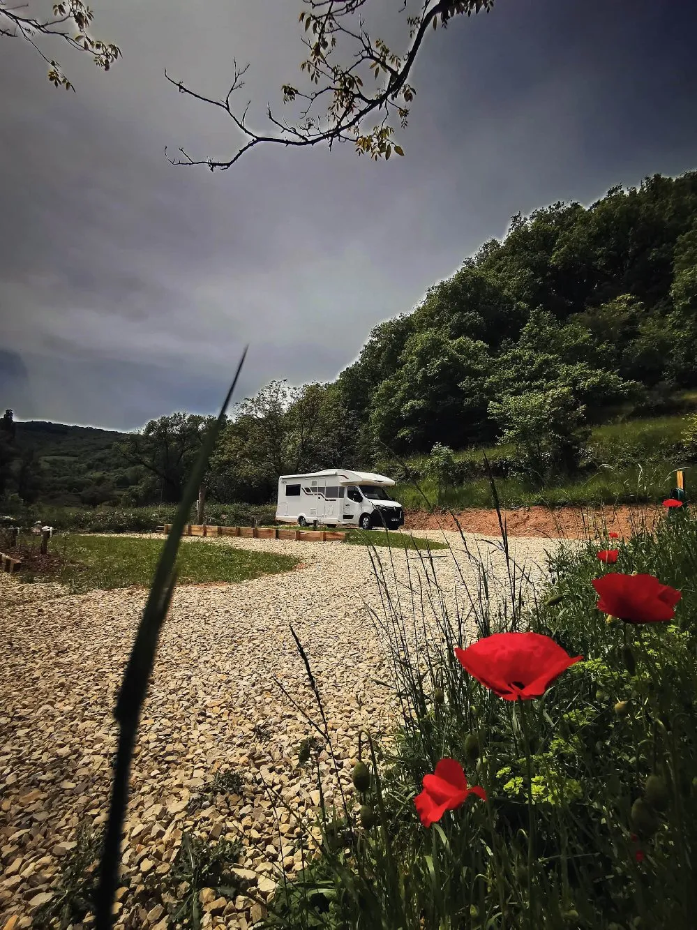 Nous mettons actuellement en place 3 emplacements «Park & Rêve» où vous pourrez vous garer tranquillement, avoir accès à l’eau et à l’électricité ainsi qu’à votre propre coin jardin.