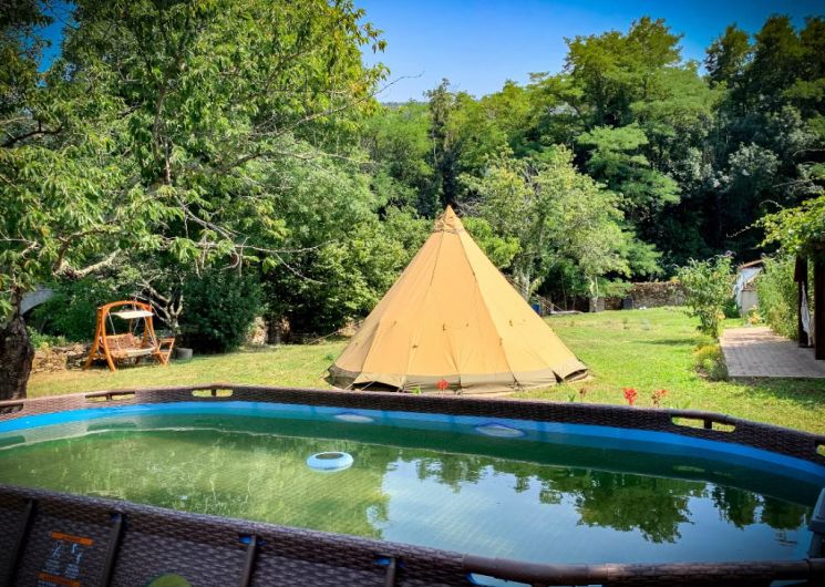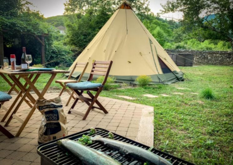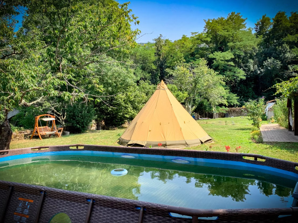 Le Rewind Garden est un jardin sauvage en bord de rivière, pensé comme un véritable lieu de vie en plein air. Ses terrasses de pierre, son tipi, sa cuisine extérieure et ses espaces de détente créent une atmosphère simple, chaleureuse et profondément connectée à la nature. Le jour, on y prend le petit‑déjeuner sous les lianes des kiwis, on cuisine sur les terrasses, on lit à l’ombre, on rêve, on flâne. Le soir, le jardin s’illumine doucement et le ciel devient un spectacle à lui seul : vaste, profond, vibrant. Beaucoup prolongent la soirée sous les étoiles avant de remonter vers s’endormir dans le tipi. La cuisine extérieure, les espaces de détente et l’accès direct à la rivière créent une atmosphère libre et apaisée. Le Rewind Garden peut être loué seul ou combiné avec La Funky Barn pour une expérience intérieur‑extérieur unique. C’est un lieu rare où nature sauvage, confort simple et liberté apaisée composent un séjour inoubliable, dans le respect du calme du hameau et de la beauté du site ; un lieu idéal pour ralentir, se reconnecter à soi.