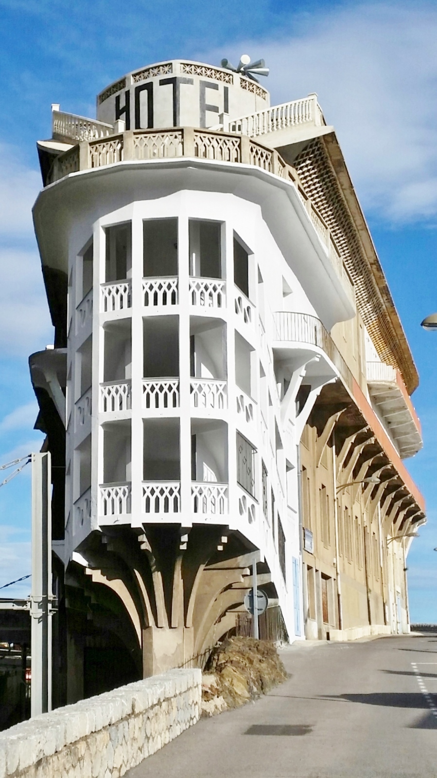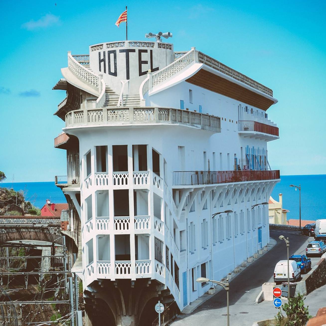 °°° Fermeture exceptionnelle jusqu’à fin février 2026 °°° Imaginé par Léon Baille entre 1928 et 1932, cet édifice singulier est un chef-d’œuvre du style “Paquebot”, courant architectural inspiré de l’univers maritime. Commandé par Jean Deléon, gérant du buffet de la gare de Cerbère, il accueillait les voyageurs internationaux contraints de faire escale entre les réseaux ferroviaires français et espagnol. Il s’agit d’un des monuments les plus impressionnants qui jonchent le paysage de la côte Vermeille. Sera ensuite inscrite à l’inventaire supplémentaire des monuments historiques en 1987 et classée monument historique en 2002. Première construction en béton armé au Monde, son architecture unique s’est inspirée des paquebots de l’époque. Aujourd’hui, son activité se destine à l’accueil d’événements culturels et ses chambres sont transformées en appartements. Visite possible à 10h, réservation obligatoire et la veille au minimum. 9€