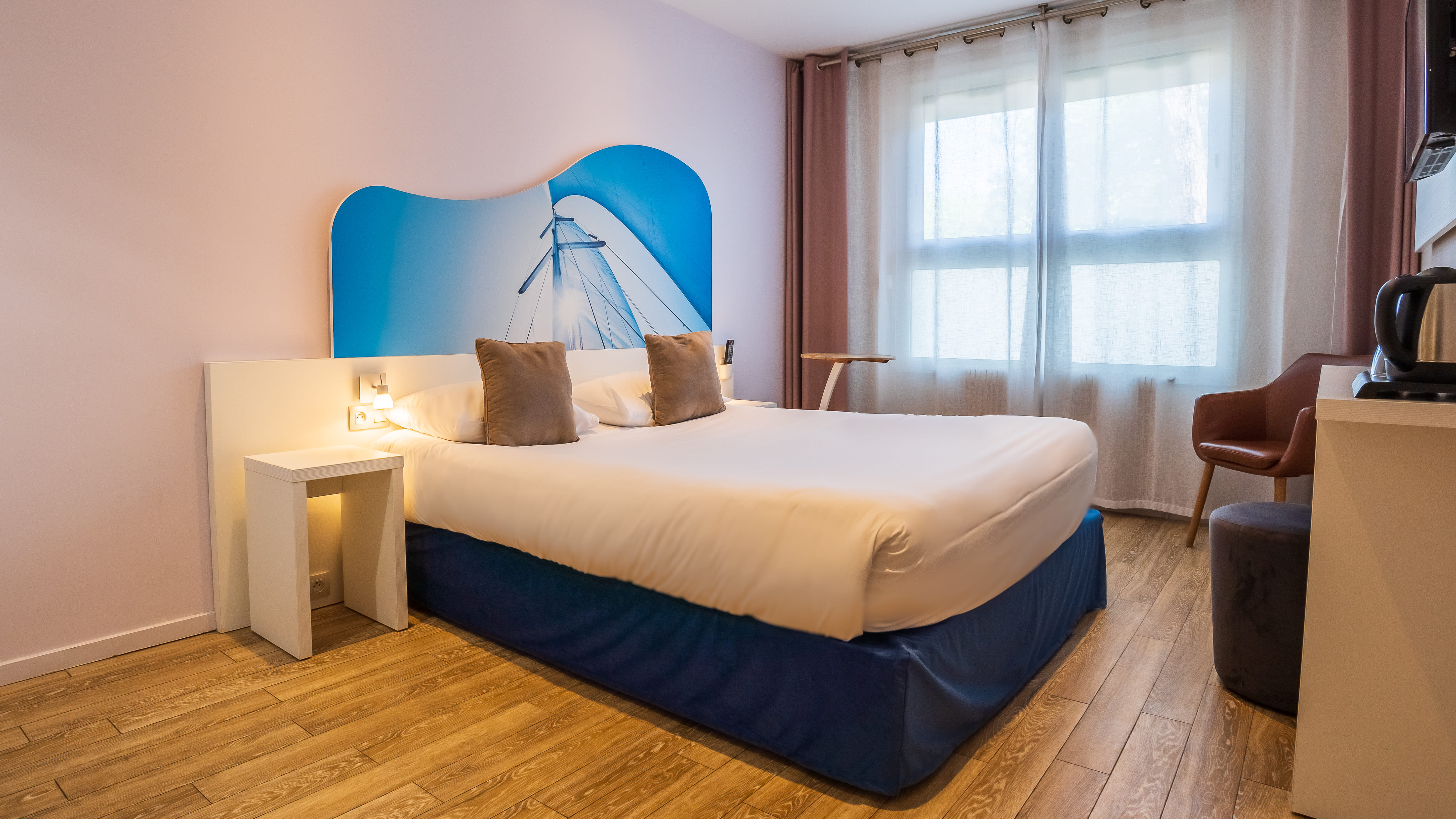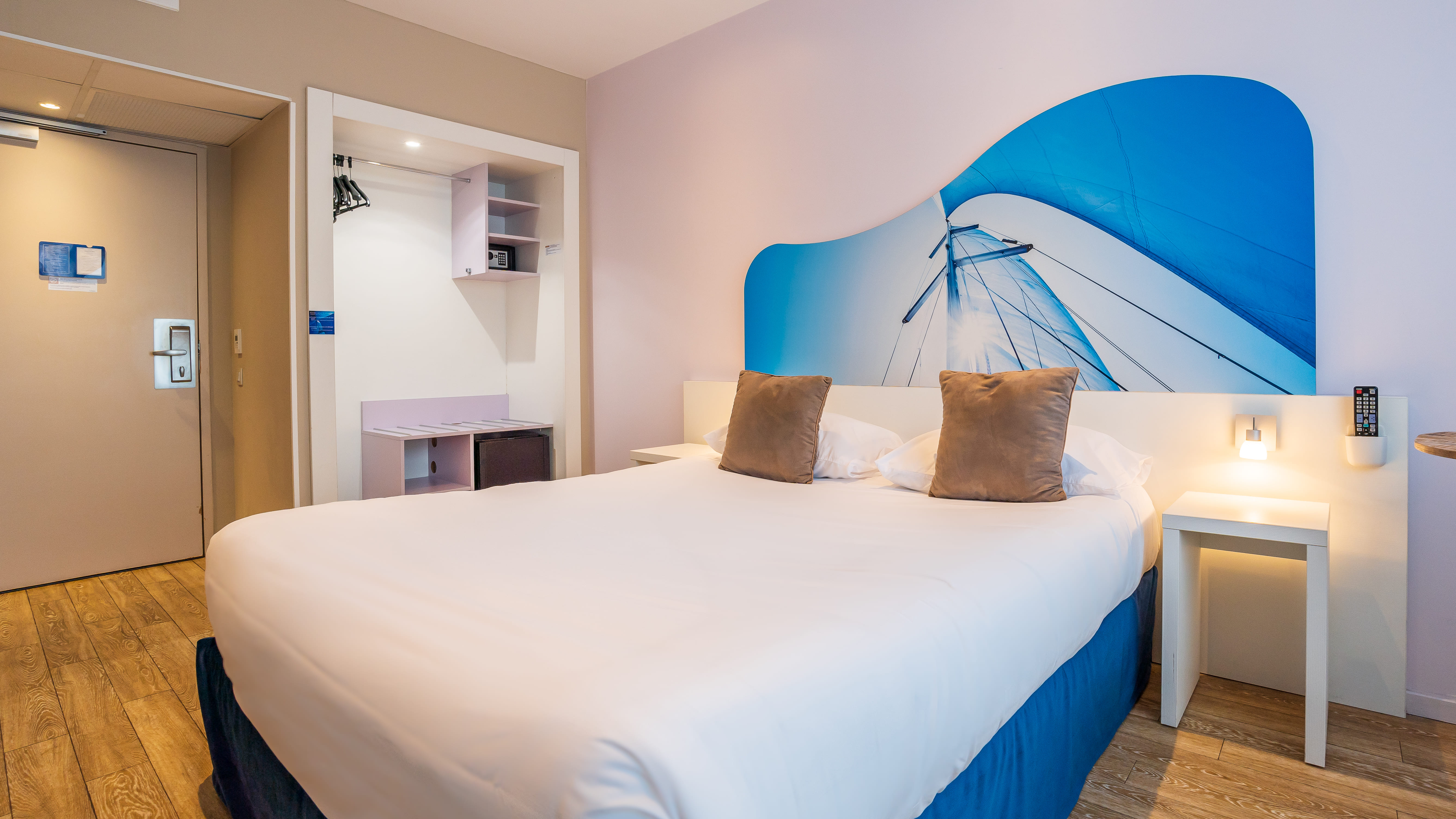 Notre établissement est situé au cœur même de la Grande Motte, dans un cadre verdoyant et très arboré. Il est, à pied, à deux pas des animations, Palais des Congrès, Pasino, restaurants et commerces, à cinq minutes du port, à dix minutes des plages. Toutes nos chambres climatisées, sont équipées de minibar, coffre-fort, sèche-cheveux, téléphone direct avec prise modem, WIFI d’accès gratuit, TV LCD. A la belle saison, vous pourrez prendre votre petit-déjeuner sur la terrasse ombragée ou vous rafraîchir dans notre salon « exotique » en dégustant une boisson. Nos chambres « Tribord », situées plein sud, disposent toutes d’un balcon ou d’un coin salon avec vue sur le jardin et la piscine aux abords fleuris. Les autres chambres sont dites « Bâbord ». Il est possible de garer votre voiture soit dans l’un des parkings gratuits attenant à l’hôtel soit dans notre parking privé fermé à 10€ (sur réservation).