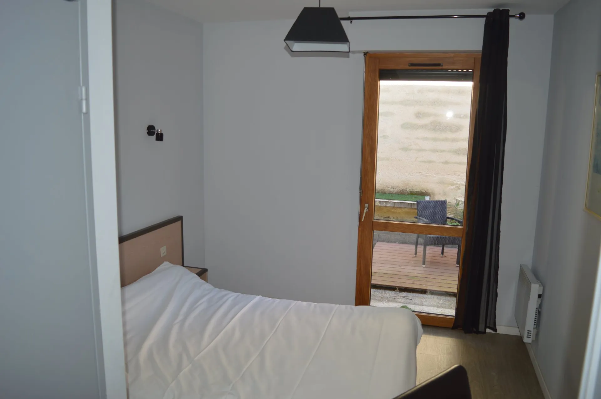 Notre établissement propose aussi une chambre aménagée pour Personne à Mobilité Réduite ainsi qu’un parking privé. Pour quelques-unes de ses chambres, l’hôtel possède une terrasse ombragée et aménagée.