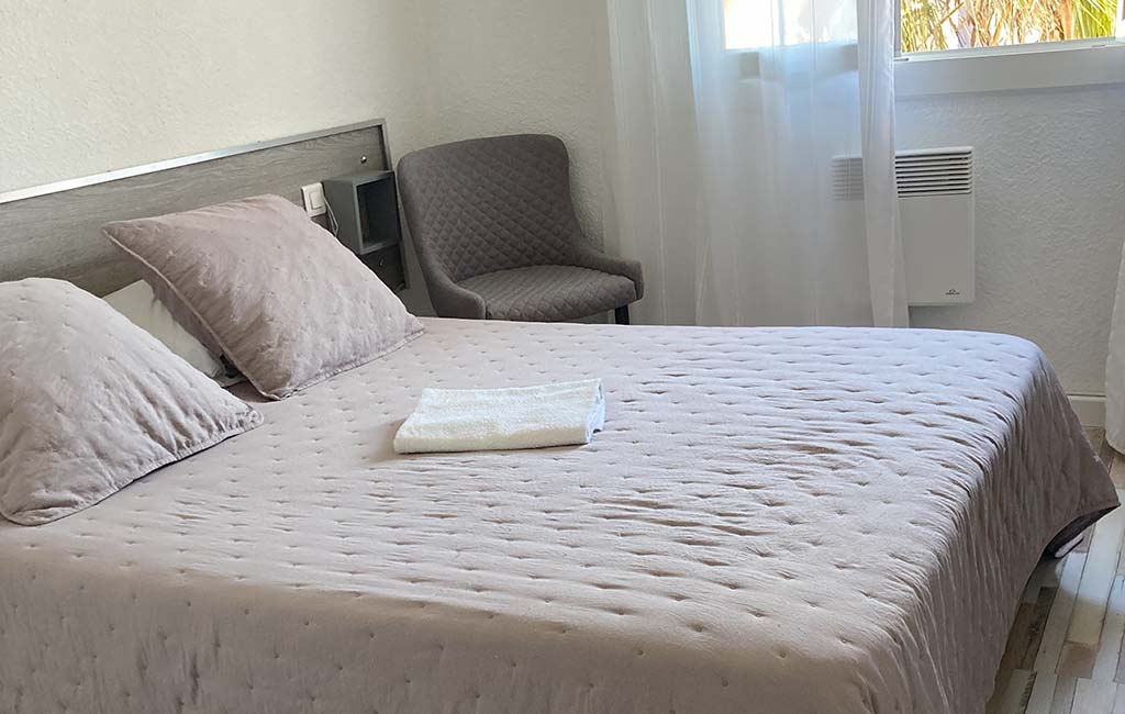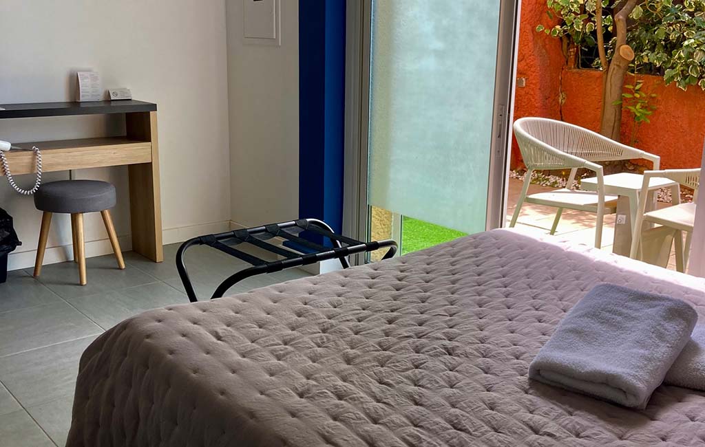 Côté plage, côté village, proche du canal du Midi, Le Gambetta** est un hôtel familial au charme discret, niché au cœur du village de Vias. Il dispose de 16 chambres spacieuses et lumineuses permettant de répondre à tous les besoins. Très jolie terrasse ombragée où le buffet est servi en saison estivale. Parking public gratuit et sécurisé à 20 m, grand garage fermé pour vélos et motos.