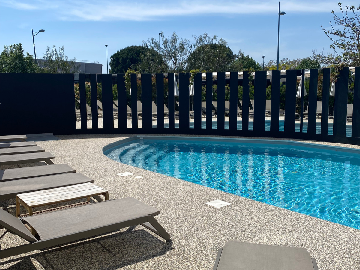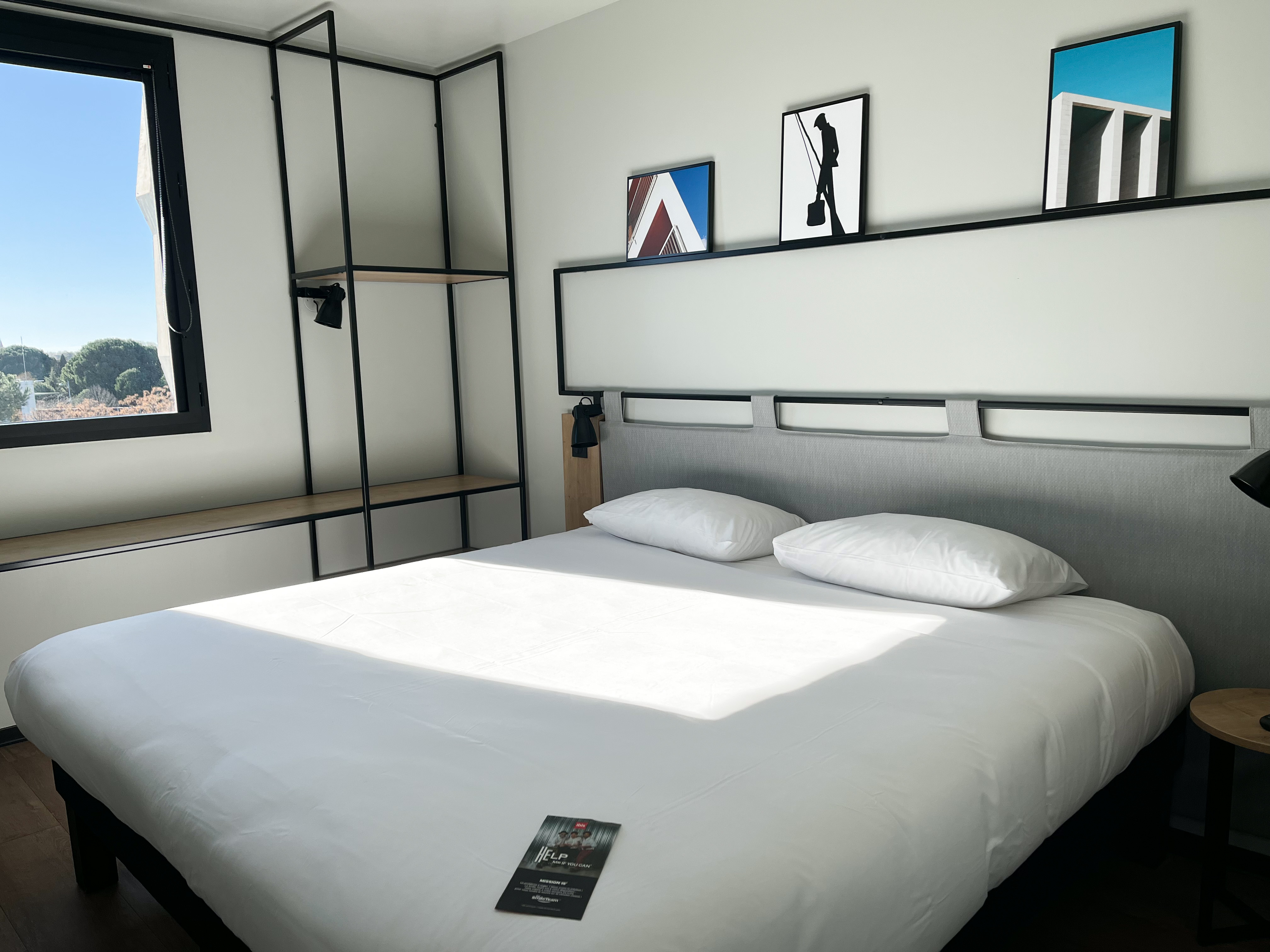 83 chambres nouvelle génération Ibis, pouvant recevoir de 1 à 6 personnes. Connexion fibre et TV 108 cm. Chambres communicantes pour les familles. Nous vous offrons également une restauration au goût du jour, dans notre restaurant ou sur notre terrasse. Ainsi que de nombreuses animations durant l’année, ouvertes à tous. 3 salles de séminaires de 12 à 90 m2 modulables à la lumière du jour. Notre hôtel dispose également d’une salle de sport avec les dernières technologies et d’une vue imprenable sur la garrigue… Notre petit-déjeuner buffet ravira petits et grands avec notre incontournable madeleine… Parking extérieur fermé.