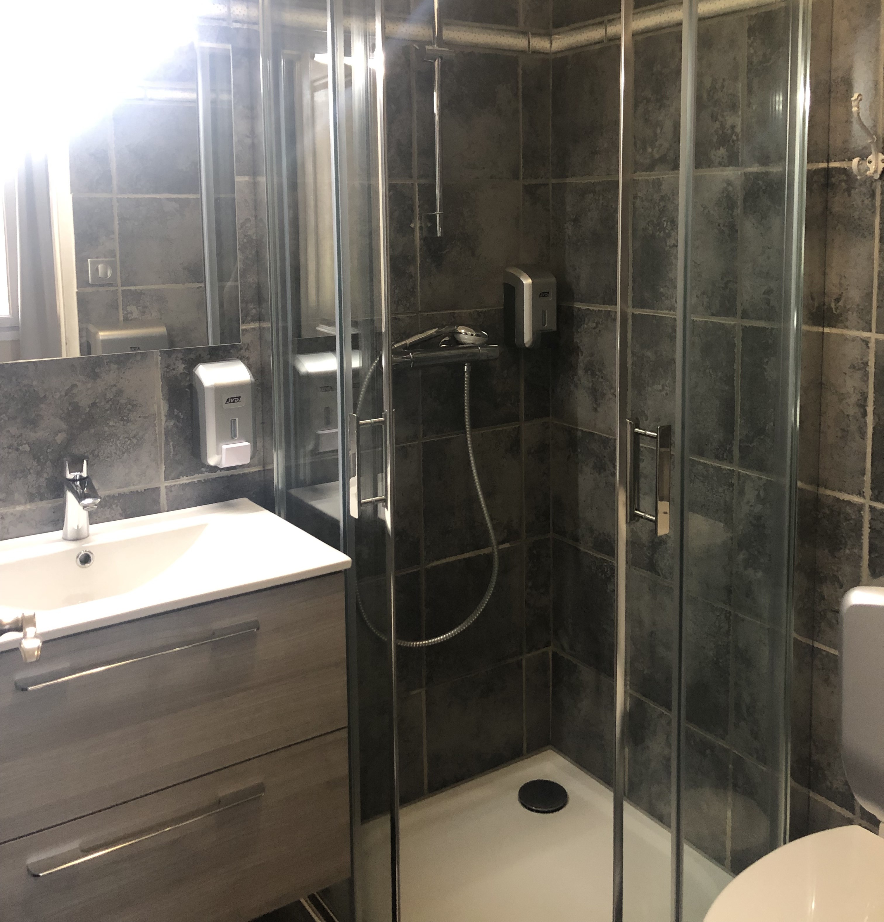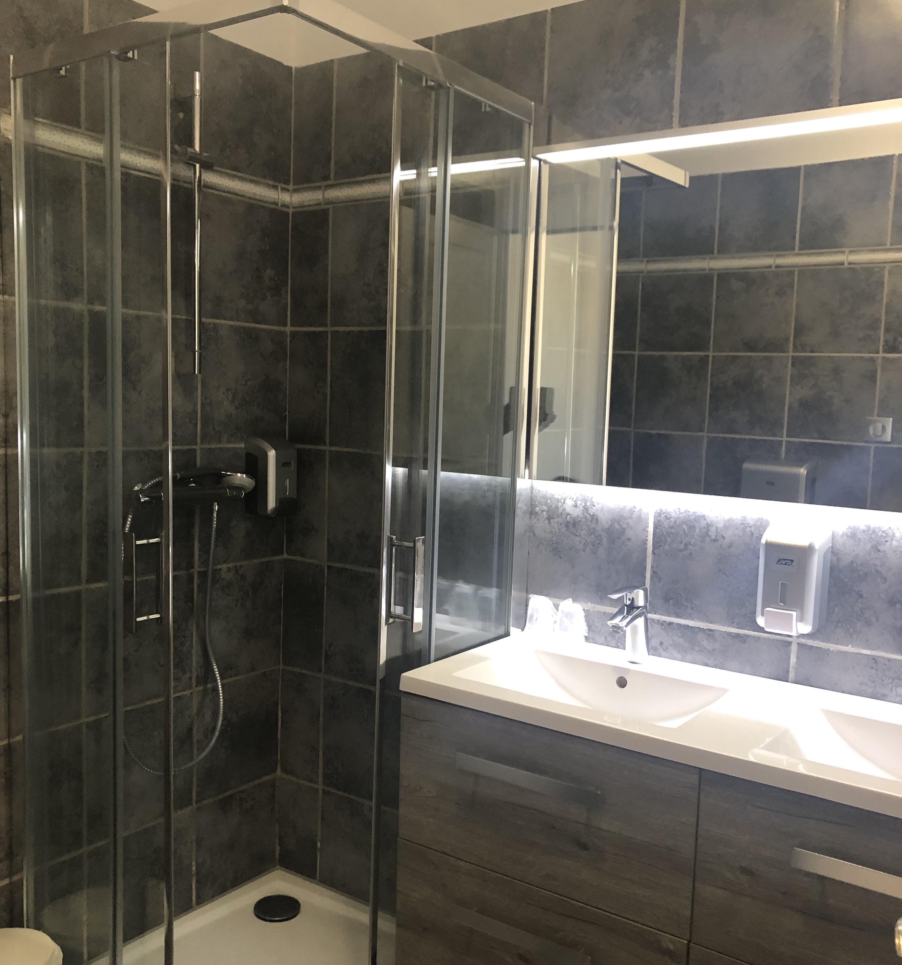 – Chambre simple ou double : grand lit double (160 cm), salle d’eau avec douche et toilettes,