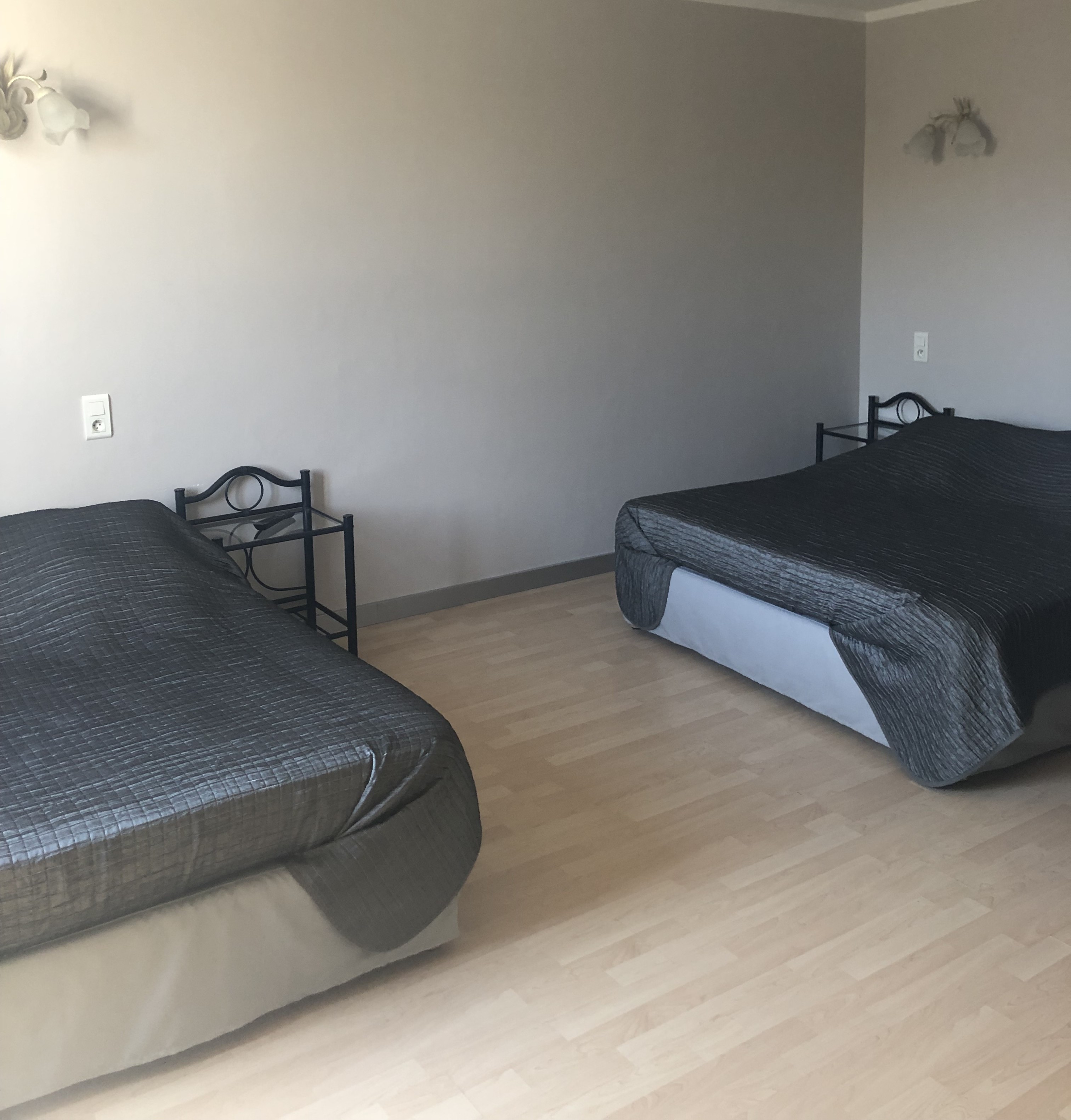– Chambre familiale ou Twin : deux lits doubles (160 cm), salle d’eau avec douche et toilettes.