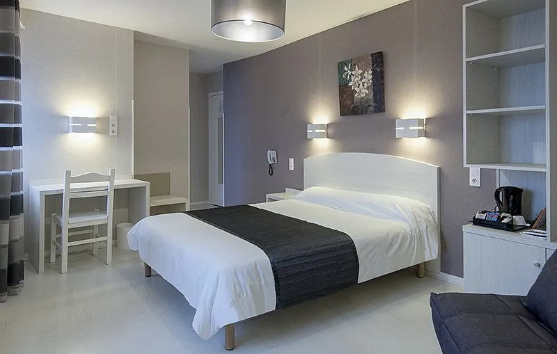 Notre hôtel dispose de 13 chambres entièrement rénovées avec tout le confort nécessaire pour une étape ou un séjour (literie neuve et confortable, couette, wifi gratuit, plateau de courtoisie, Canal +, parking gratuit auto et moto, ascenseur, local vélo, restaurant traditionnel, petit-déjeuner,…). N’hésitez pas à parcourir notre site.