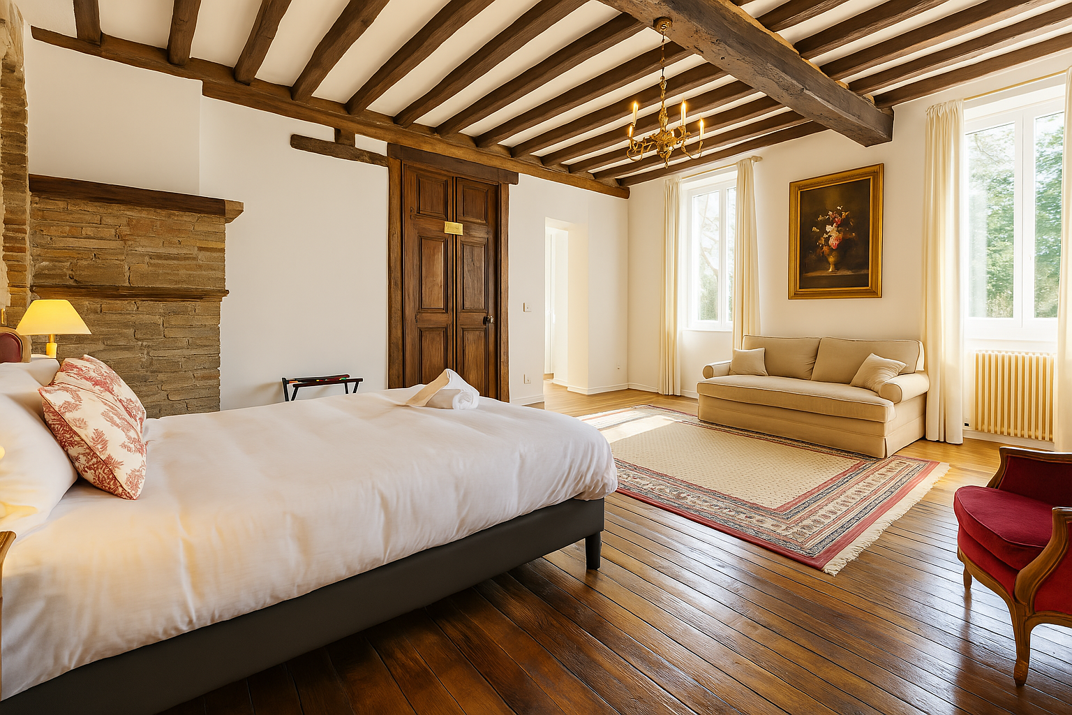 Nos 11 chambres spacieuses, décorées avec un esprit qui respecte l’histoire du lieu, vous offriront un havre de paix après une journée riche en émotions. Vous vous sentirez chez vous dans cette belle demeure d’antan.