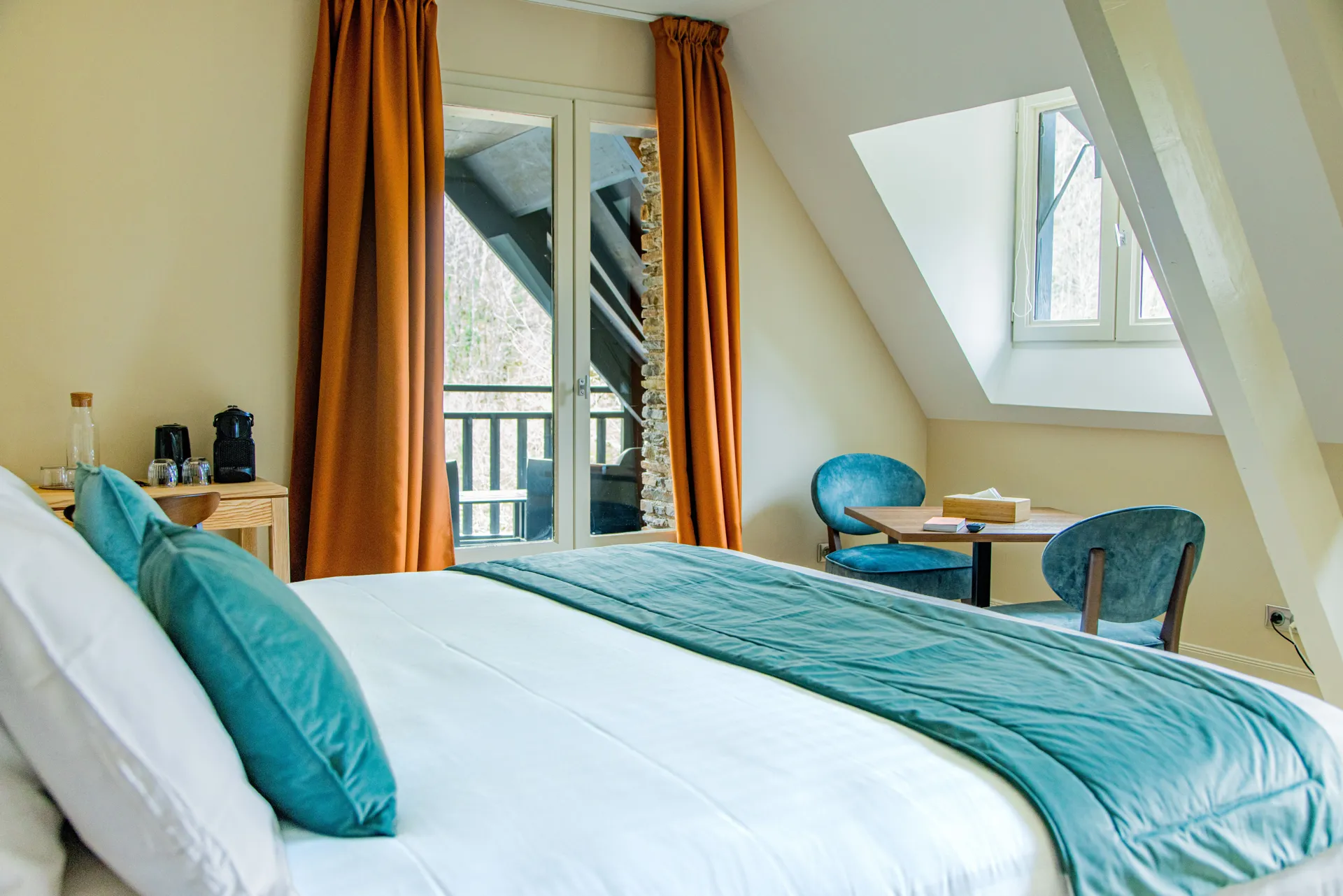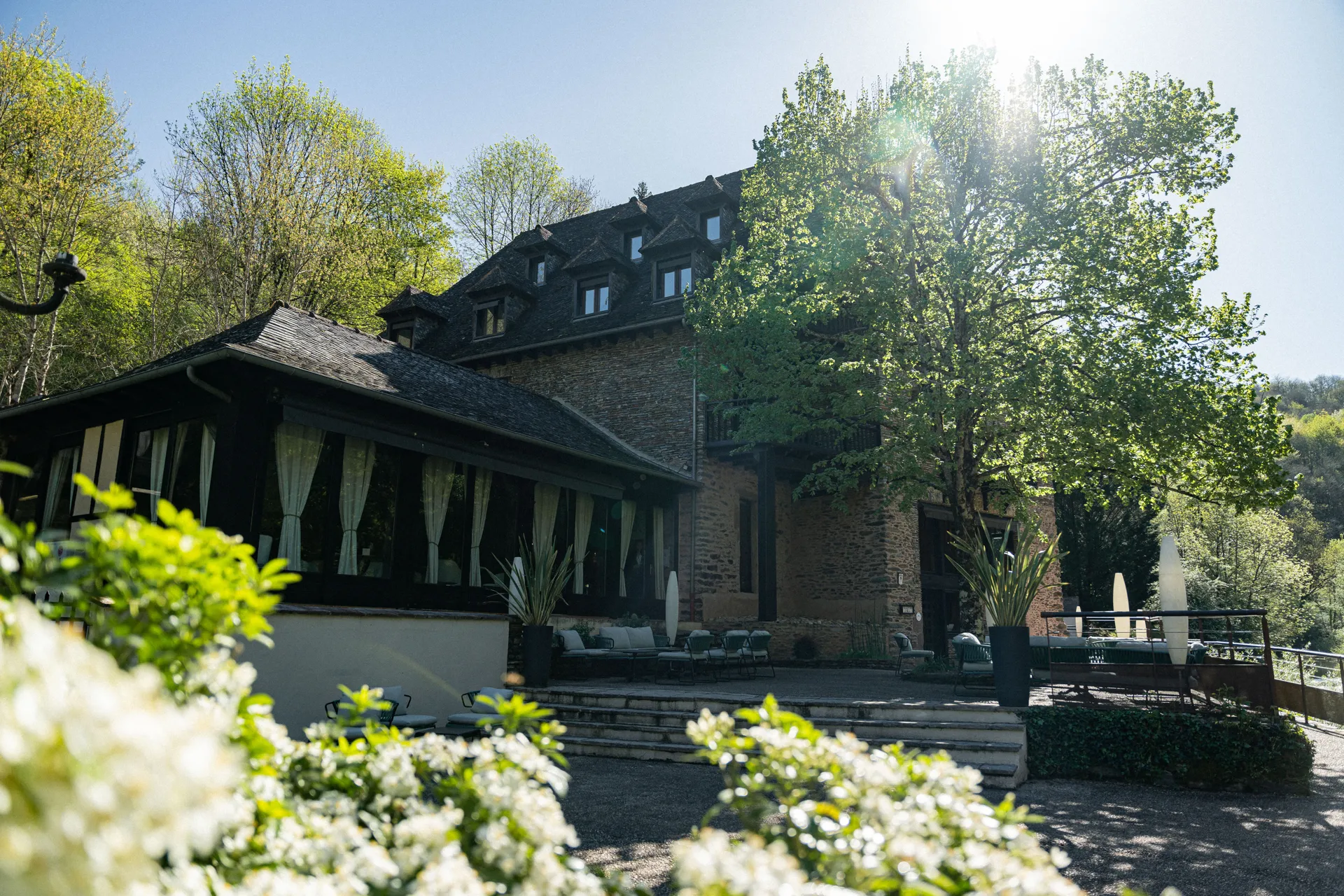 Situé dans un ancien moulin du XVIIIe siècle, l’hôtel s’organise sur deux étages dans un écrin de verdure. Les chambres mêlent confort contemporain et charme authentique. Au pied du moulin s’écoule la rivière, à admirer en toutes saisons depuis balcons et terrasses. Le charme de la pierre et du schiste s’accordent parfaitement à l’environnement naturel alentour.