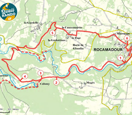 Partant et revenant à Rocamadour, la randonnée proposée ici est bien sûr une invitation à visiter ce village de notoriété internationale. Accroché de façon spectaculaire à sa falaise, confondant son architecture avec la verticalité de la pierre, Rocamadour livre à nos regards éblouis la beauté de ses sanctuaires mystiques où la Vierge noire règne depuis plus de 1 000 ans.